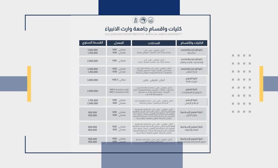 جامعة وارث الأنبياء تفتح أبوابها للناجحين في الدور الثالث