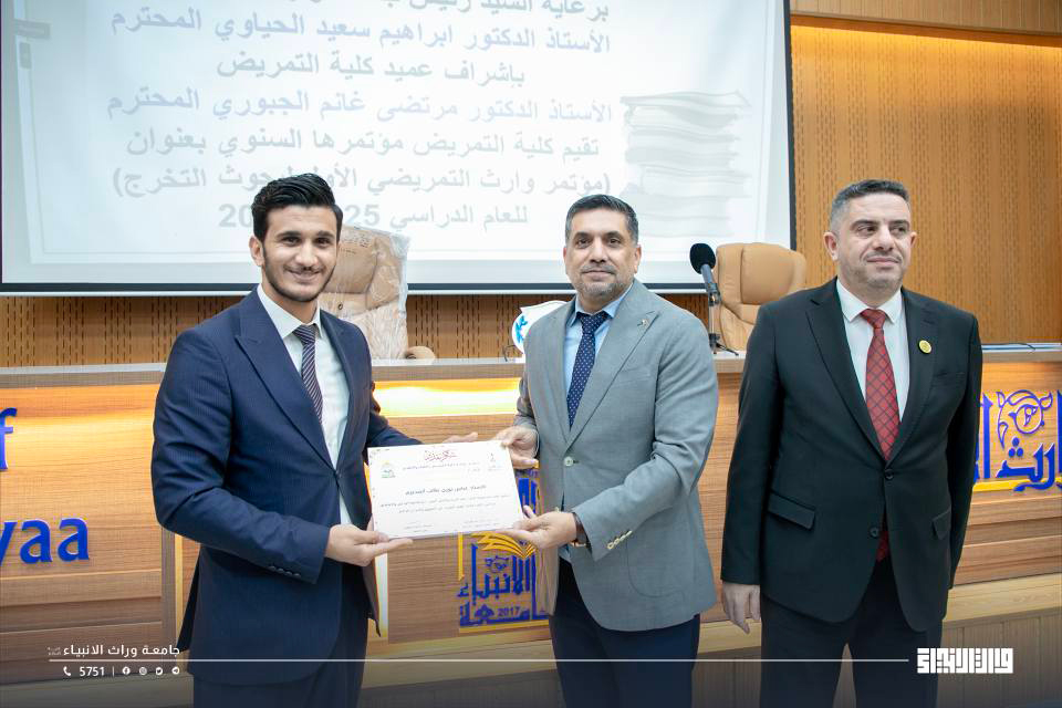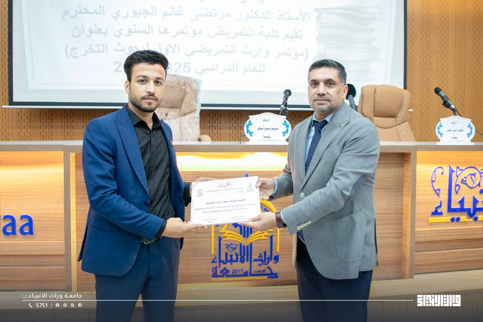 برعاية السيد رئيس جامعة وارث الأنبياء (ع)، الأستاذ الدكتور إبراهيم سعيد الحياوي، وبحضور مساعد رئيس الجامعة للشؤون الإدارية الأستاذ الدكتور نوفل الأعرجي، أقامت عمادة كلية التمريض مؤتمر وارث التمريضي الأول، الذي خُصص لمناقشة بحوث تخرج طلبة المرحلة الرابعة، بحضور لجنة علمية متخصصة شكلتها العمادة لهذا الغرض.
