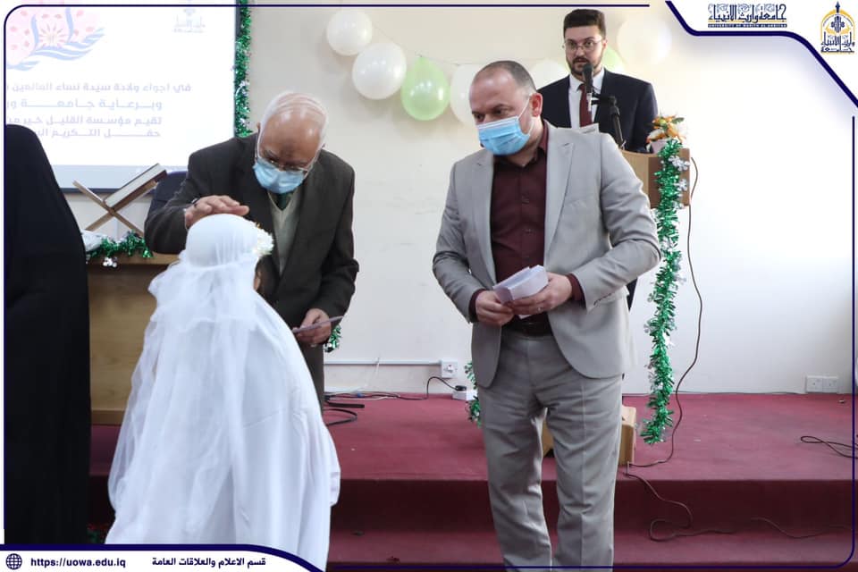 بمناسبة ولادة الصديقة الطاهرة فاطمة الزهراء (عليها السلام) احتضنت جامعة وارث الانبياء(عليه السلام) احتفالاً لمؤسسة (القليل خير من الحرمان الخيرية) لتكليف مجموعة من الايتام الذين بلغوا سن التكليف الشرعي ، حيث استقبل السيد رئيس الجامعة الاستاذ الدكتور طالب حسن موسى الاعزاء الايتام وتبادل الحديث معهن وحثهن على الالتزام بتعاليم الدين والاقتداء بالسيدة فاطمة الزهراء (عليها السلام) ، من جانبه عبر الشيخ محمد الركابي ممثل مؤسسة القليل خير من الحرمان الخيرية عن شكره وتقديره للقائمين على الجامعة لاستقبالهم للسنة الثانية لحفل تكليف السن الشرعي ودعمهم لهذه الشريحة المهمة والمظلومة في المجتمع .