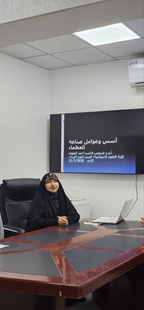 أقامت كلية العلوم الإسلامية ندوة علمية بعنوان "أسس وعوامل صناعة العظماء"، ألقتها الدكتورة فردوس العلوي، وذلك في قاعة مجلس الكلية، بحضور الكادر التدريسي.