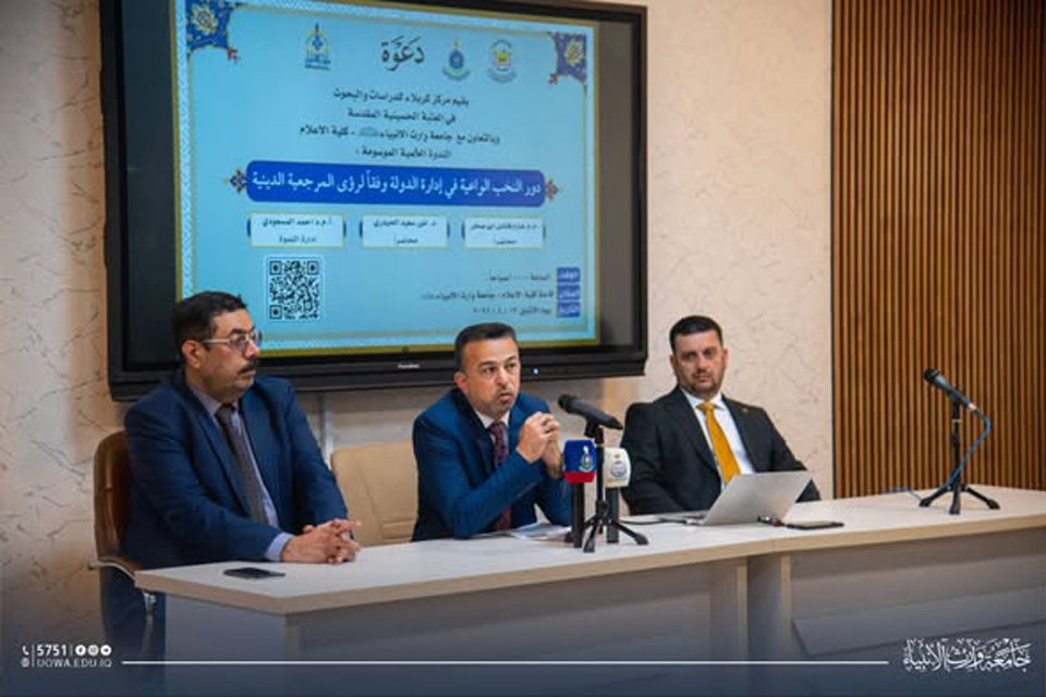 أقامت جامعة وارث الأنبياء / كلية الإعلام، بالتعاون مع مركز كربلاء للدراسات والبحوث، ندوة علمية بعنوان “دور النخب الواعية في إدارة الدولة وفقاً لرؤى المرجعية الدينية”.