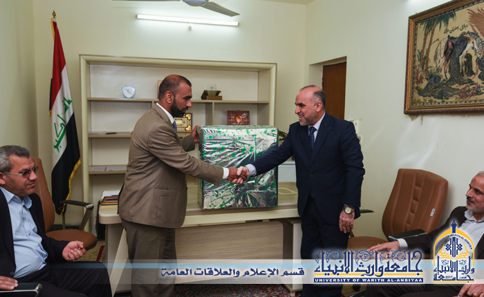 زار وفد من جامعة كربلاء جامعة وارث الانبياء  من اجل تبادل الخبرات وفتح افاق التعاون بين الجامعتين حيث قدم رئيس الوفد الدكتور علي كريم خضير عميد كلية التمريض في جامعة كربلاء التهاني للجامعة وخص الدكتور خميس بندرعبيد عميد كلية التمريض في جامعة وارث الانبياء بلتبريكات متمنيا له وللجامعة كل التوفيق في مسيرتهم العلمية خدمة للمجتمع