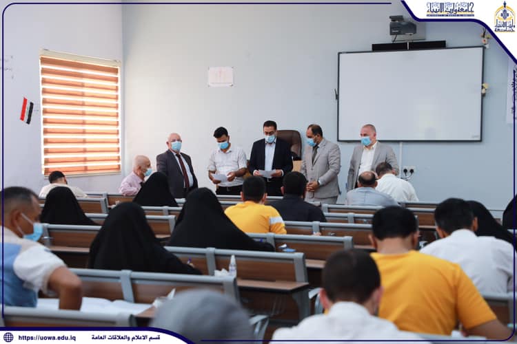 وسط اجراءات وقائية مشددة استأنفت جامعة وارث الانبياء(عليه السلام) الامتحانات النهائية الحضورية في كليات واقسام الجامعة ، حيث اجرى السيد المساعد العلمي/ رئيس الجامعة وكالة الاستاذ الدكتور عباس الدعمي والسيد المساعد الاداري الاستاذ الدكتور نوفل الاعرجي جولة تفقدية للاطلاع على سير الامتحانات النهائية واوعز بتوفير كافة المتطلبات اللوجستية واكدوا على اتباع الامور الوقائية للحفاظ على سلامة طلبتنا الاعزاء من خلال حثهم على الالتزام بالاجراءات الوقائية من لبس الكمامة والتعقيم المستمر .