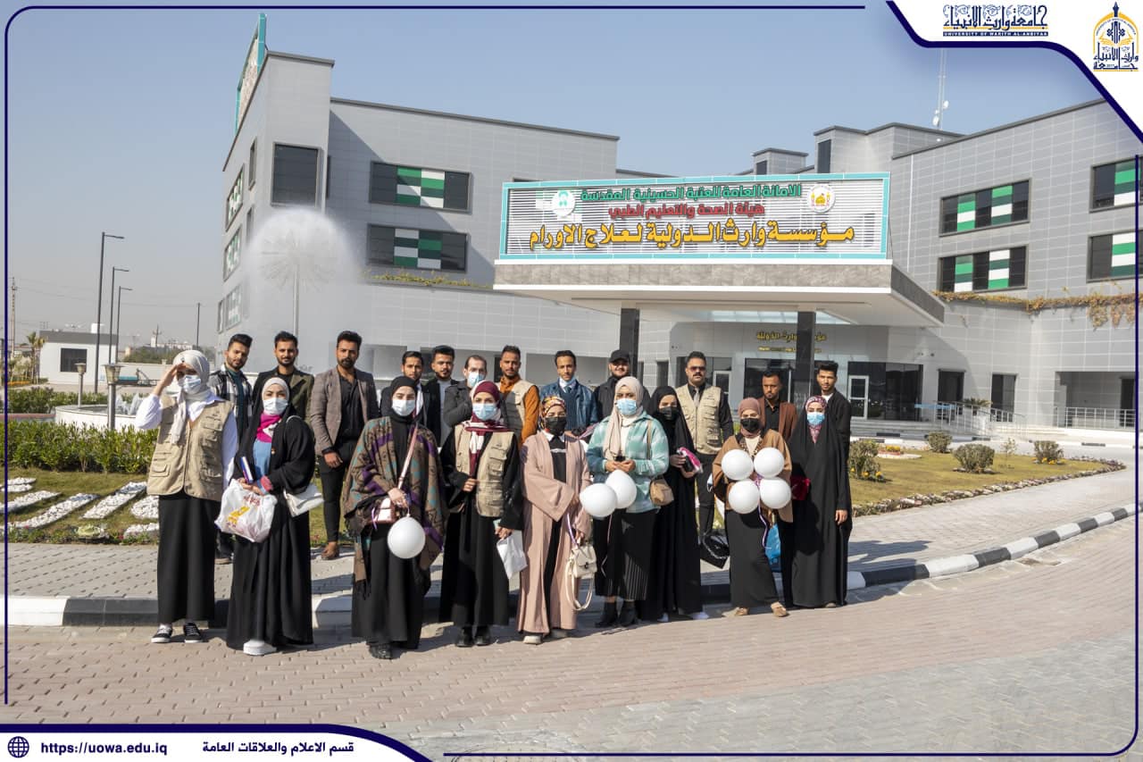 ضمن المشاريع الخيرية المستمرة التي يعمل بها الفريق وبدعم ورعاية رئاسة الجامعة زار فريق عطاء طلبة جامعة وارث الأنبياء (عليه السلام ) مؤسسة وارث للأمراض السرطانية التابعة للأمانة العامة للعتبة الحسينية المقدسة ومركز الأورام السرطانية في مدينة الامام الحسين ( عليه السلام ) الطبية في كربلاء المقدسة لتقديم الدعم المعنوي للأطفال المرضى من هدايا والعاب ومستلزمات.