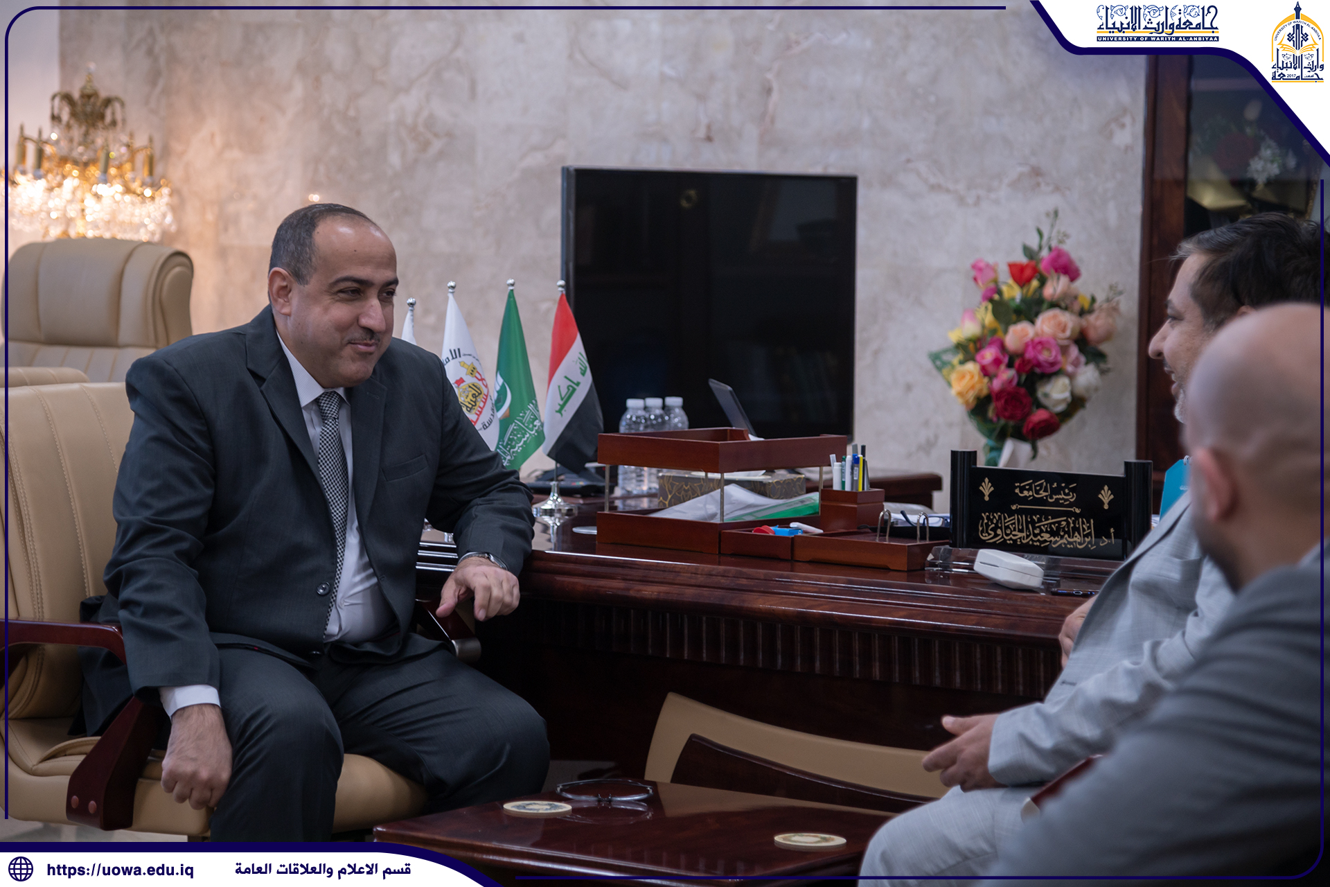 لغرض الإطلاع على سير الامتحانات الالكترونية والحضورية، استقبل السيد رئيس جامعة وارث الانبياء(عليه السلام) الاستاذ الدكتور ابراهيم الحياوي