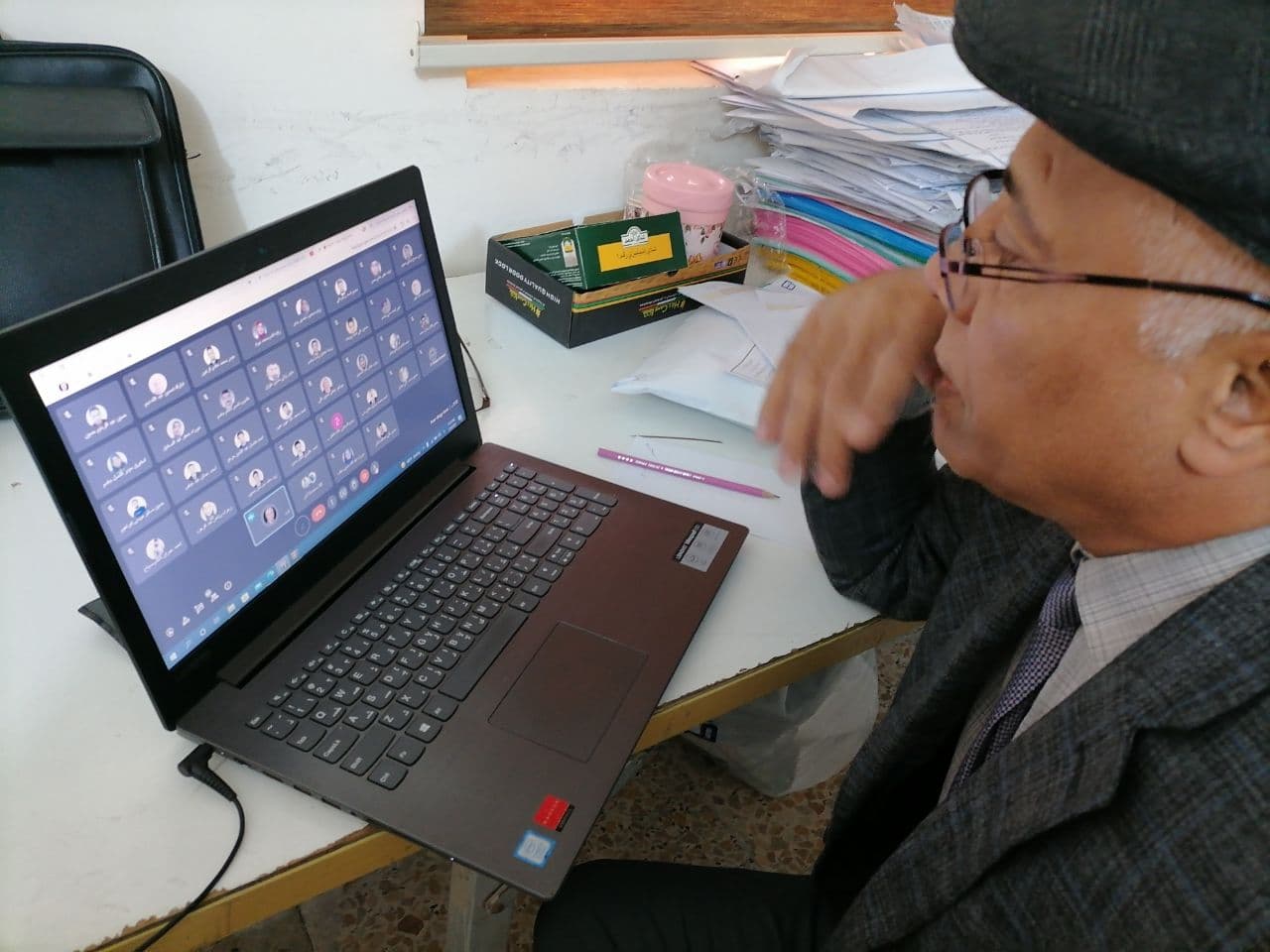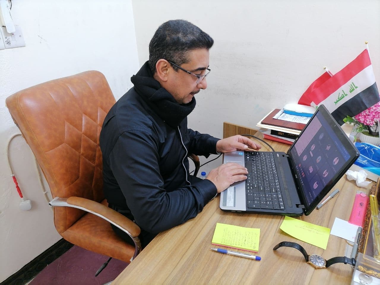 بالصور.. متابعة عميد كلية القانون في جامعة وارث الأنبياء (عليه السلام) الاستاذ المساعد الدكتور علي صاحب الشريفي لعمل المراقبات الالكترونية في الكلية.