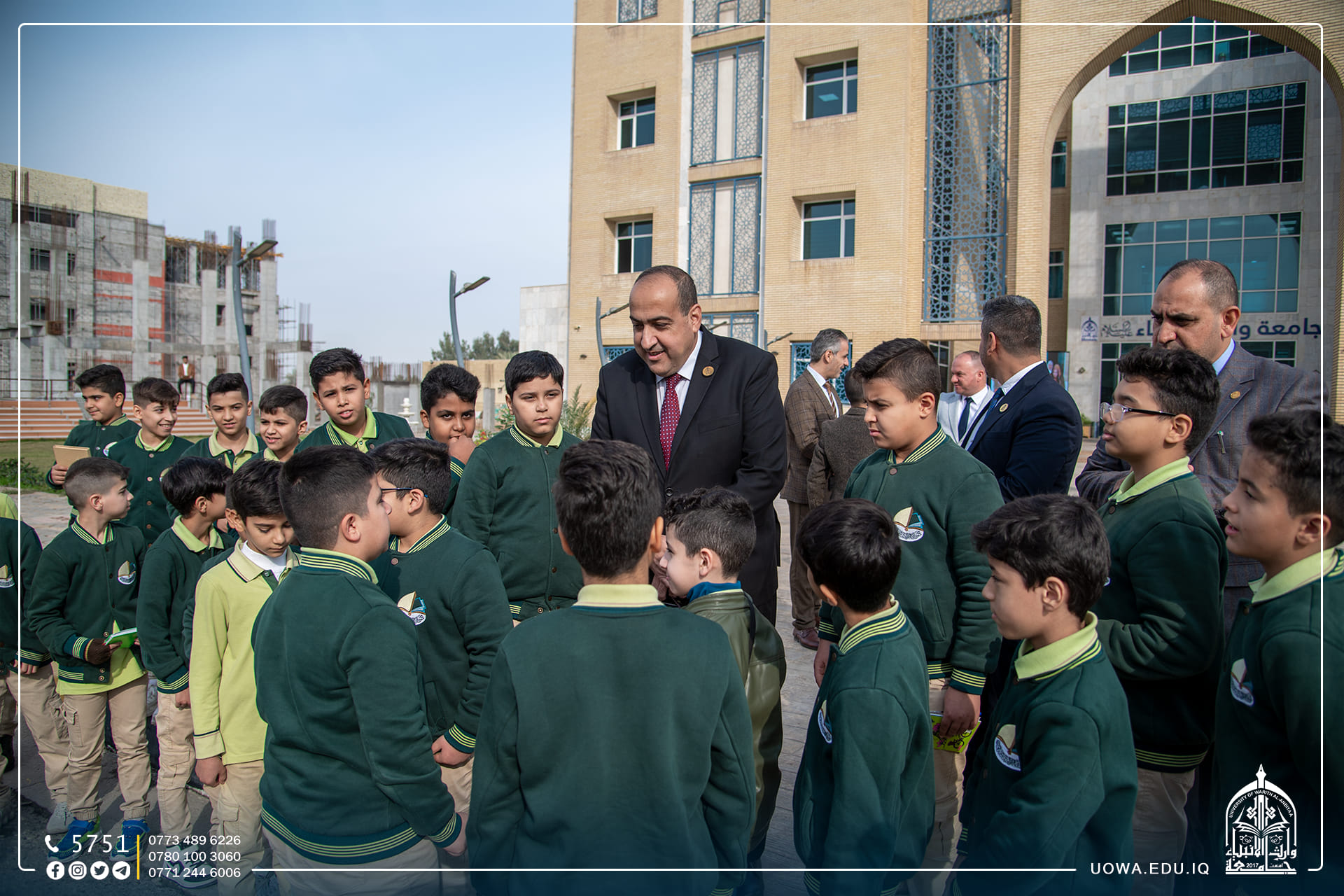 استقبلت جامعة وارث الأنبياء (عليه السلام) عدد من طلبة مرحلة الخامس الابتدائي في مدرسة الق الوارث الابتدائية التابعة للعتبة الحسينية المقدسة، وتجول الطلبة في أروقة الجامعة وكلية التمريض واطلعوا على المختبرات العلمية فيها، وتم تقديم شرح مختصر عن مختبر الكيمياء والتشريح، إذ تساهم هذه الرحلات في تنمية مهارات الطلبة، وفي نهاية السفرة خط الطلبة رسائل شكر الى الجامعة بأناملهم اليافعة، عبروا من خلالها عن التفاصيل الجميل التي شاهدوها في الجامعة بأنامل بريئة .