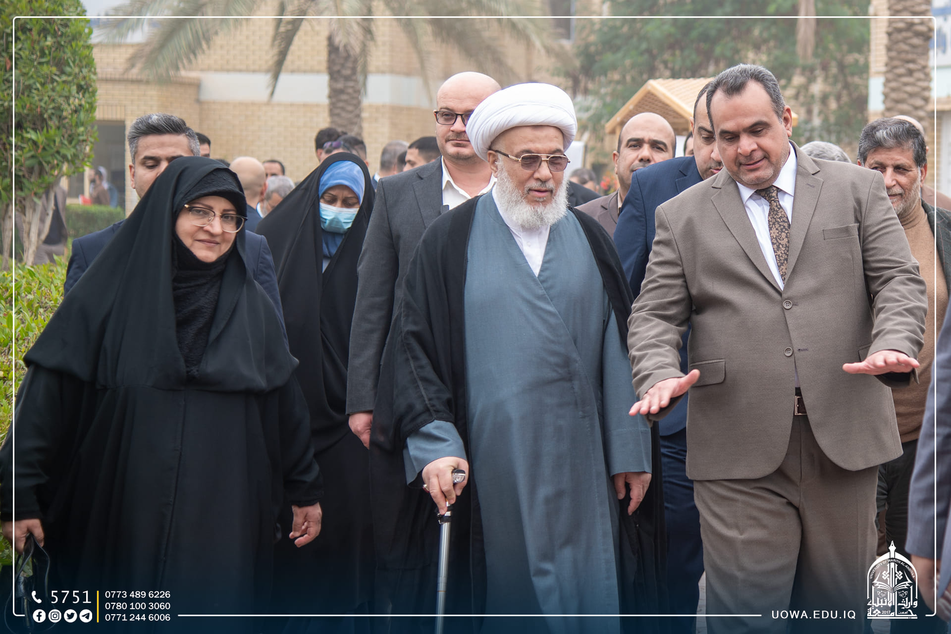 إذ اطلع سماحته على التطور العمراني والعلمي في الجامعة والتقى بعدد من الطلبة مؤكداً على أهمية البناء العلمي الرصين لهم خلال المراحل الدراسية جنباً الى جنب مع الاهتمام بالبناء العمراني ومتانته.