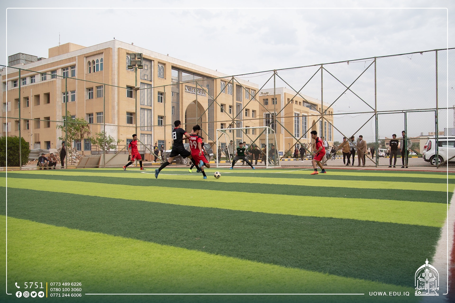 بالصور .... استمرار منافسات بطولة وارث الانبياء لخماسي الكرة بين فرق كليات واقسام الجامعة،التي يقيمها قسم النشاطات الطلابية بالتعاون مع مركز رعاية الشباب بالعتبة الحسينية المقدسة.