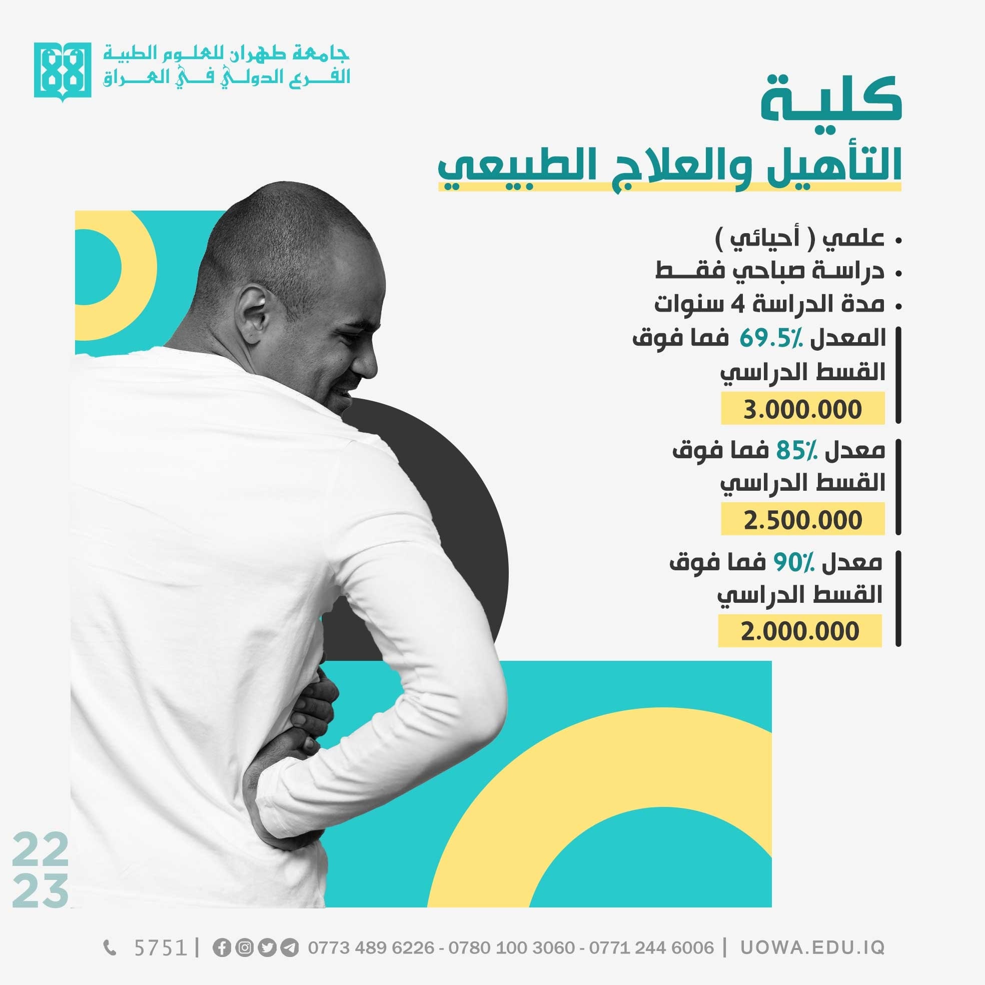 *عزيزي الطالب ايام قليلة لانتهاء التسجيل استثمر الفرصة الاخيرة للتسجيل في كليتا التأهيل والعلاج الطبيعي والتمريض والقبالة.