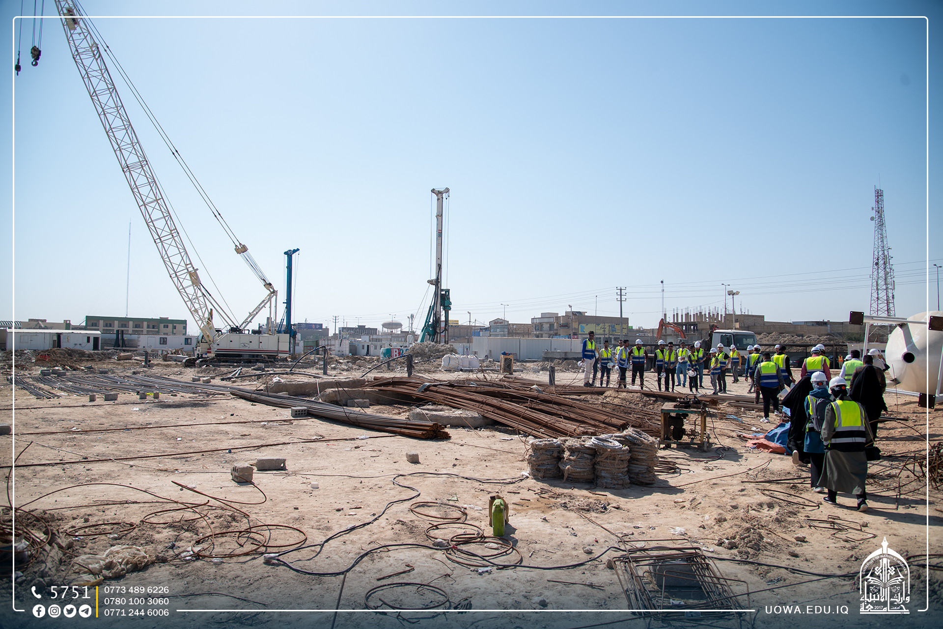 بالصور... زيارة علمية لطلبة كلية الهندسة / قسم الهندسة المدنية الى مشروع توسعة مؤسسة وارث لعلاج الاورام السرطانية التابعة للعتبة الحسينية المقدسة من اجل الاطلاع على مراحل وضع الركائز الاساسية للبنايات.