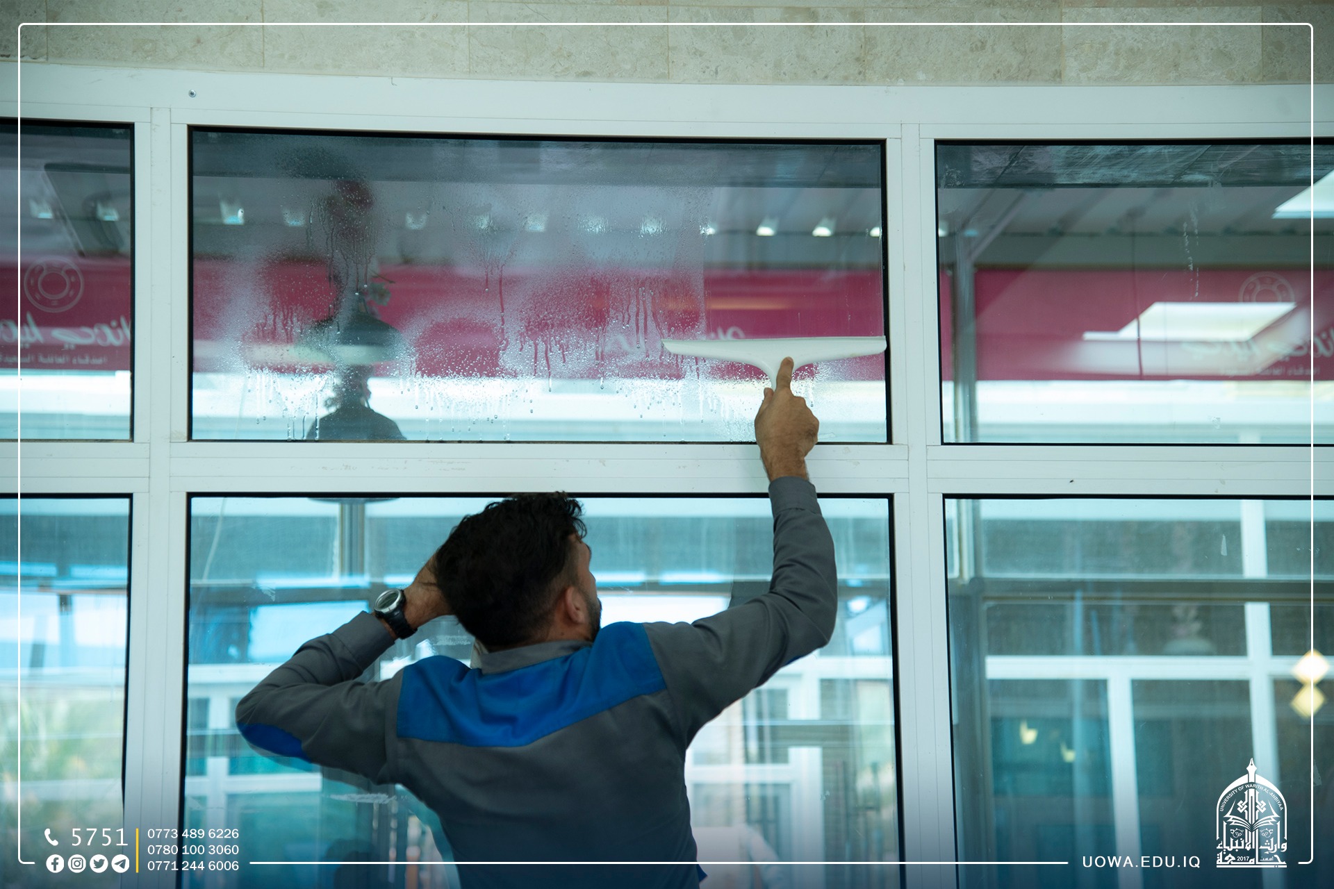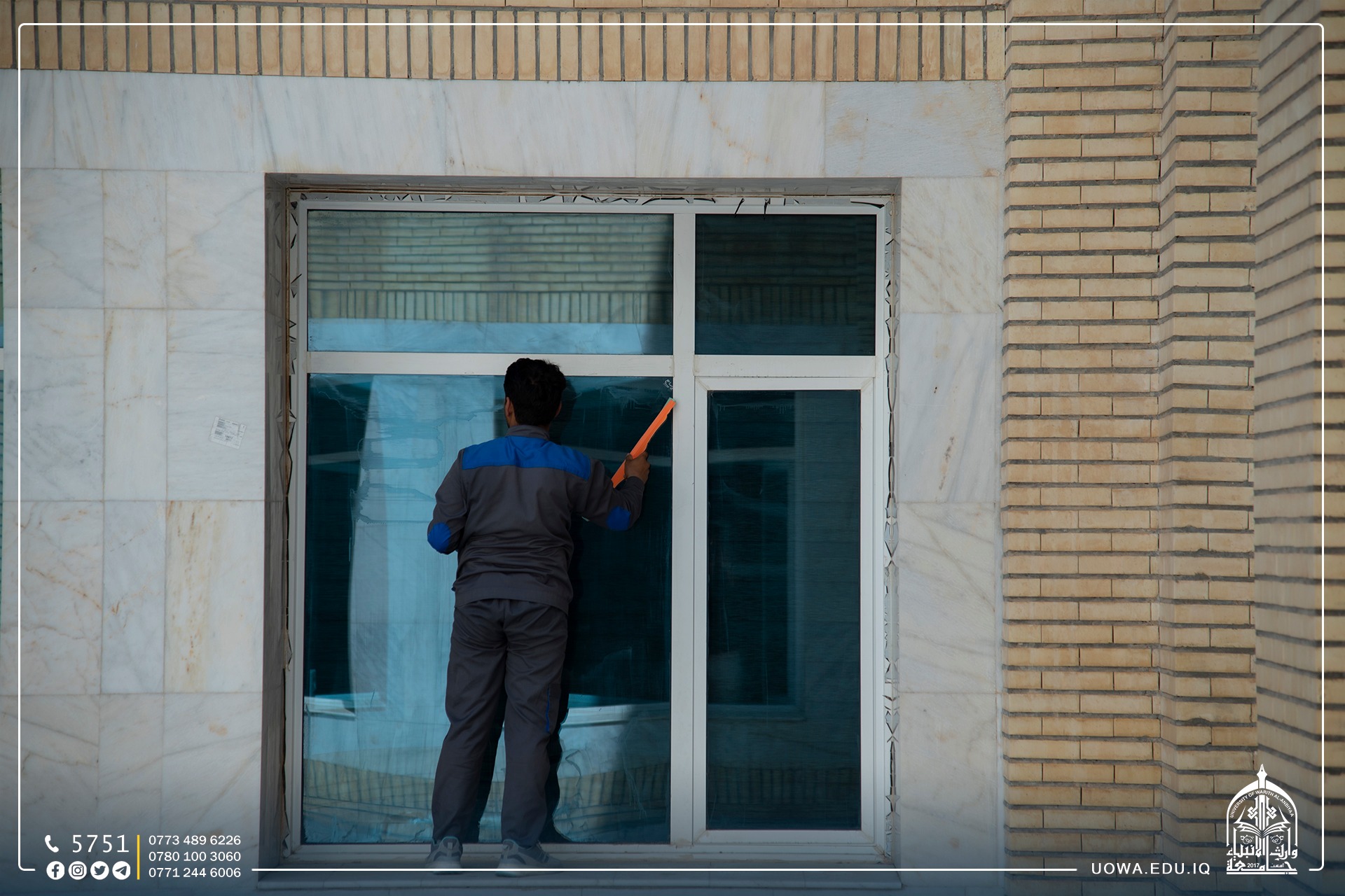 قسم رعاية الحرم في العتبة الحسينية المقدسة بكادره المتخصص يباشر بأعمال تهيئة مباني الجامعة وادامتها ضمن الاستعدادت للعام الدراسي الجديد.