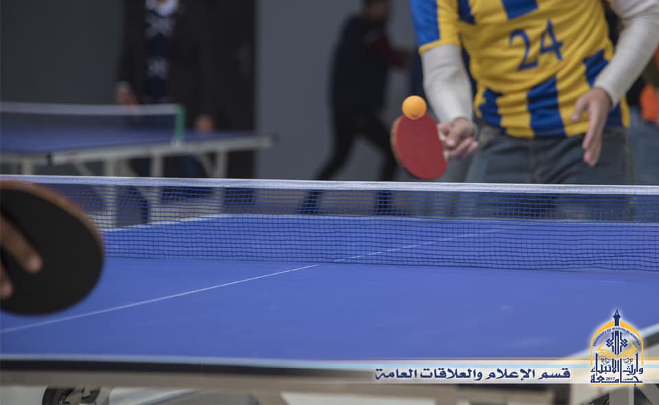 برعاية السيد رئيس جامعة وارث الانبياء التابعةً للعتبة الحسينية المقدسة اقام قسم النشاطات الطلابية بطولة الجامعة لتنس الطاولة، وقال م.م. همام عبد العباس رئيس قسم النشاطات الطلابية ان البطولة شملت جميع الكليات وبمشاركة كبيرة من الطلبة وبنظام التسقيط الفردي واضاف ستكون هناك عدة نشاطات خلال السنة للطلبة الاعزاء منها بطولة لخماسي الكره ومهرجان شعري وغيرها