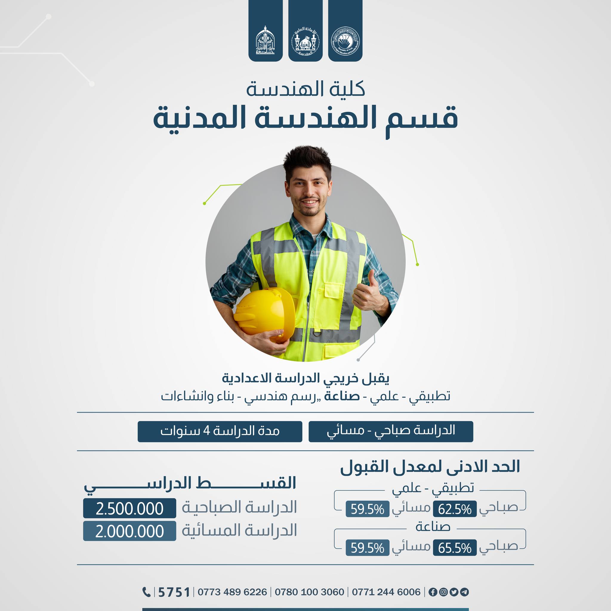 الى الطلبة الإعزاء الراغبين بالتقديم على #كليةالهندسة في جامعة وارث الانبياء(عليه السلام) #تعرفوا على آخر التحديثات في المعدلات والمدخلات خلال #الأسبوع_الأخير من الفترة الرسمية للتسجيل.