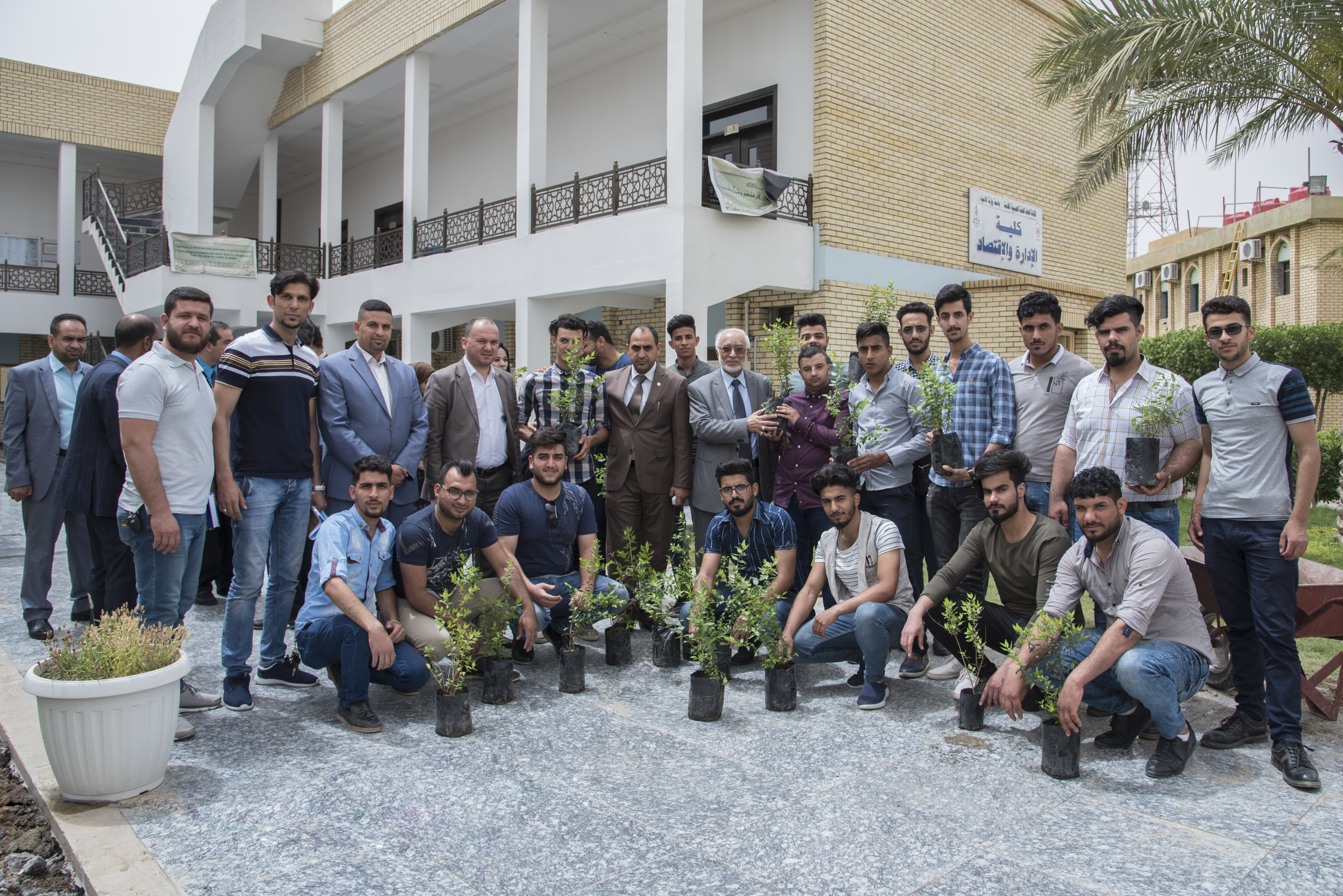 طلبة كلية الادارة والاقتصاد مع السيد رئيس الجامعة أ .د طالب الموسوي والسيد عميد الكلية أ.د.عباس كاظم الدعمي يتشاركون غرس شتلات الاشجار في حدائق جامعة وارث الانبياء عليه السلام لتنمية القيم البيئية.