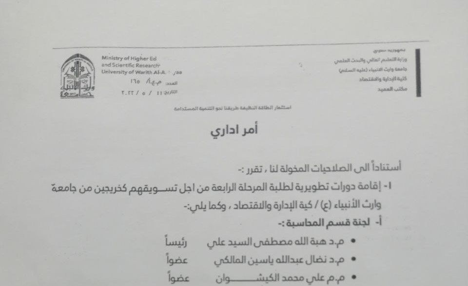اقامت كلية الادارة والاقتصاد /قسم المحاسبة دورة تطويريه لطلبه المرحلة الرابعه وذلك من أجل تسويقهم كخريجيين كفؤيين من كلية الادارة والاقتصاد قسم المحاسبة