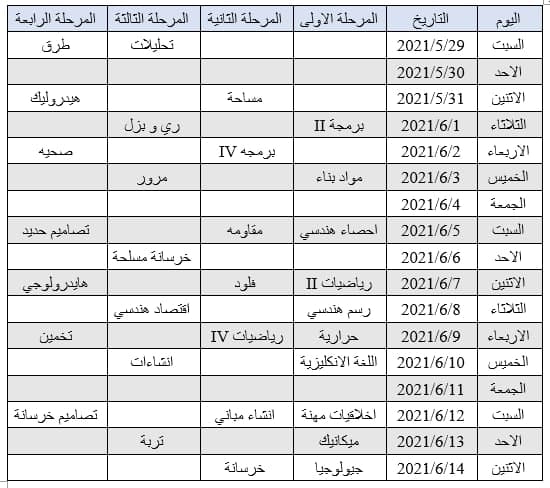 جدول امتحانات الشهر الثاني لطلبة قسم الهندسة المدنية و للدراستين الصباحية و المسائية