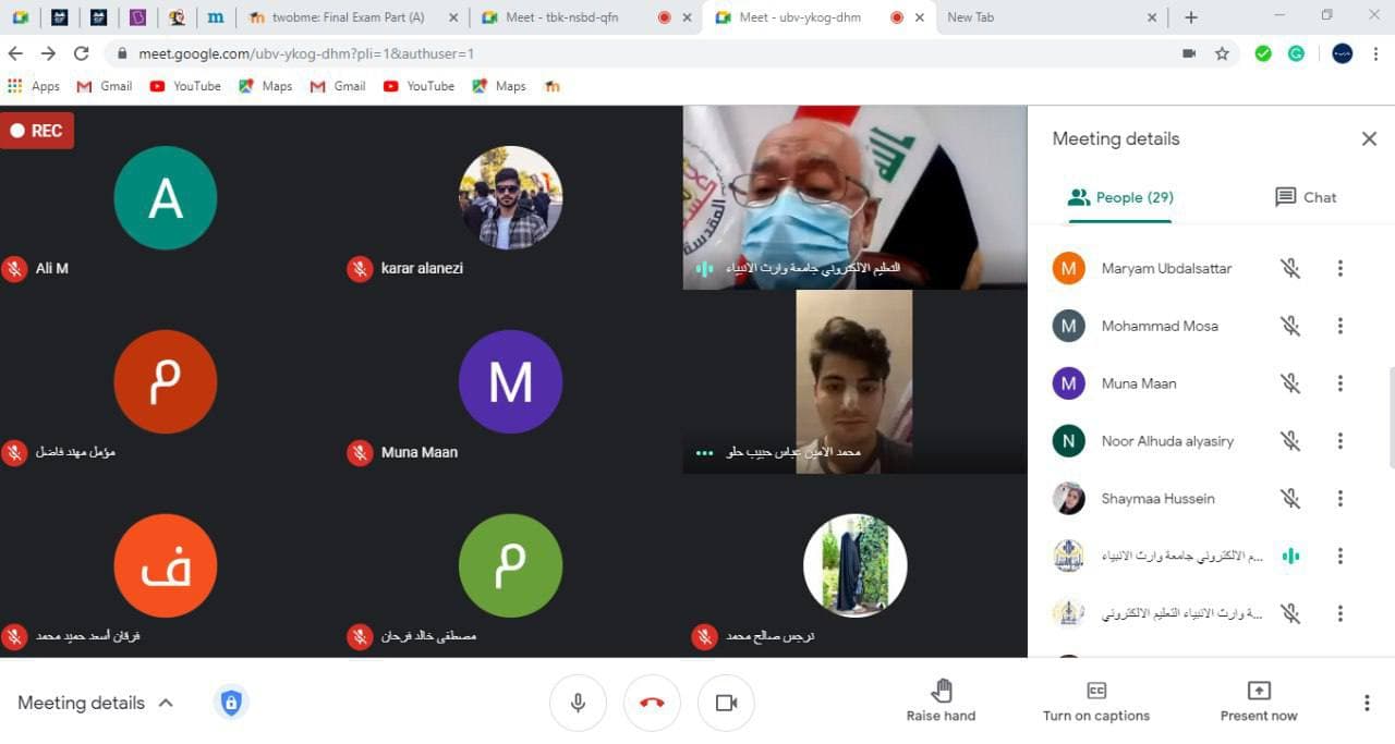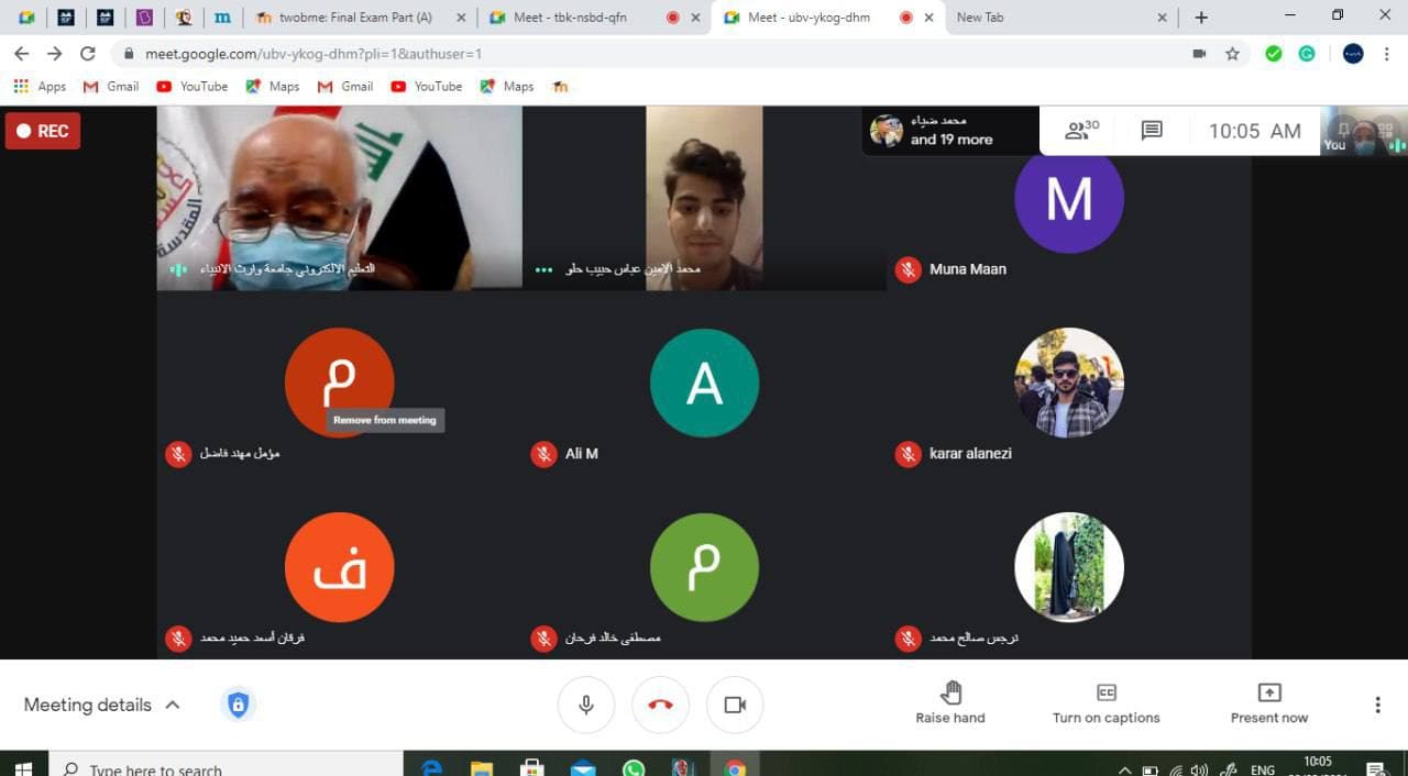 زار السيد رئيس جامعه وارث الأنبياء (ع) الأستاذ الدكتور طالب حسن موسى عدد من القاعات الامتحان الإلكتروني لقسم هندسه الطب الحياتي حيث قام بالتحدث مع عدد من الطلبة اضافة الى اعضاء اللجنة الامتحانية و التدريسيين المراقبين وأشاده بالجهود المبذولة والتنظيم العالي وأبدى شكره وامتنانه للقائمين على آلية سير الامتحانات الإلكترونية.