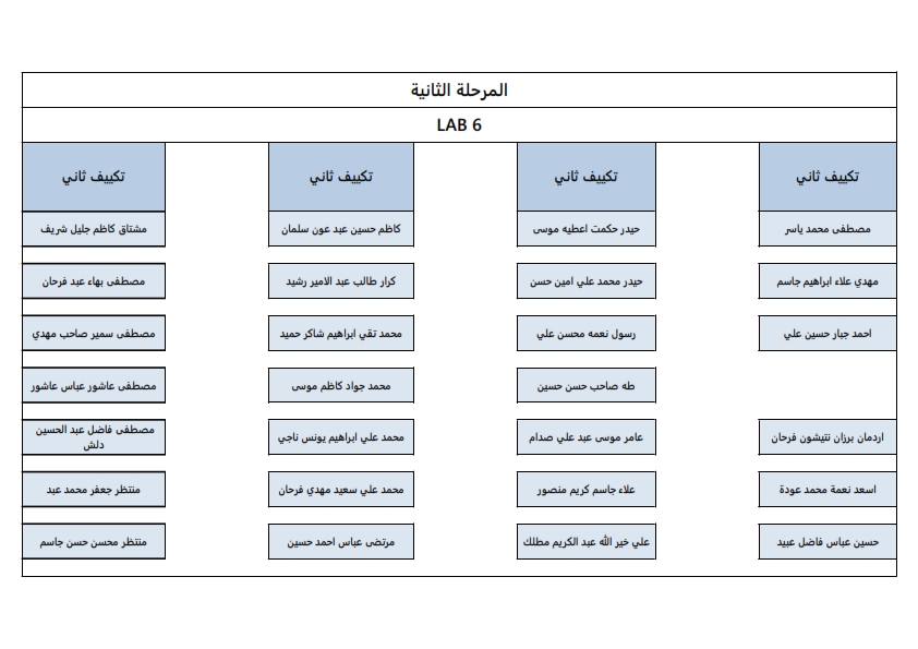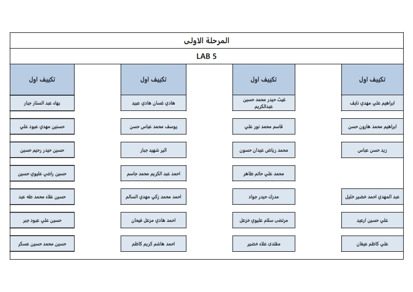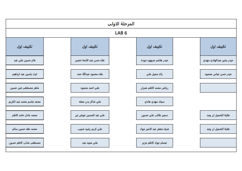 خارطة توزيع اماكن الطلبة لقسم هندسة تقنيات التكييف والتبريد