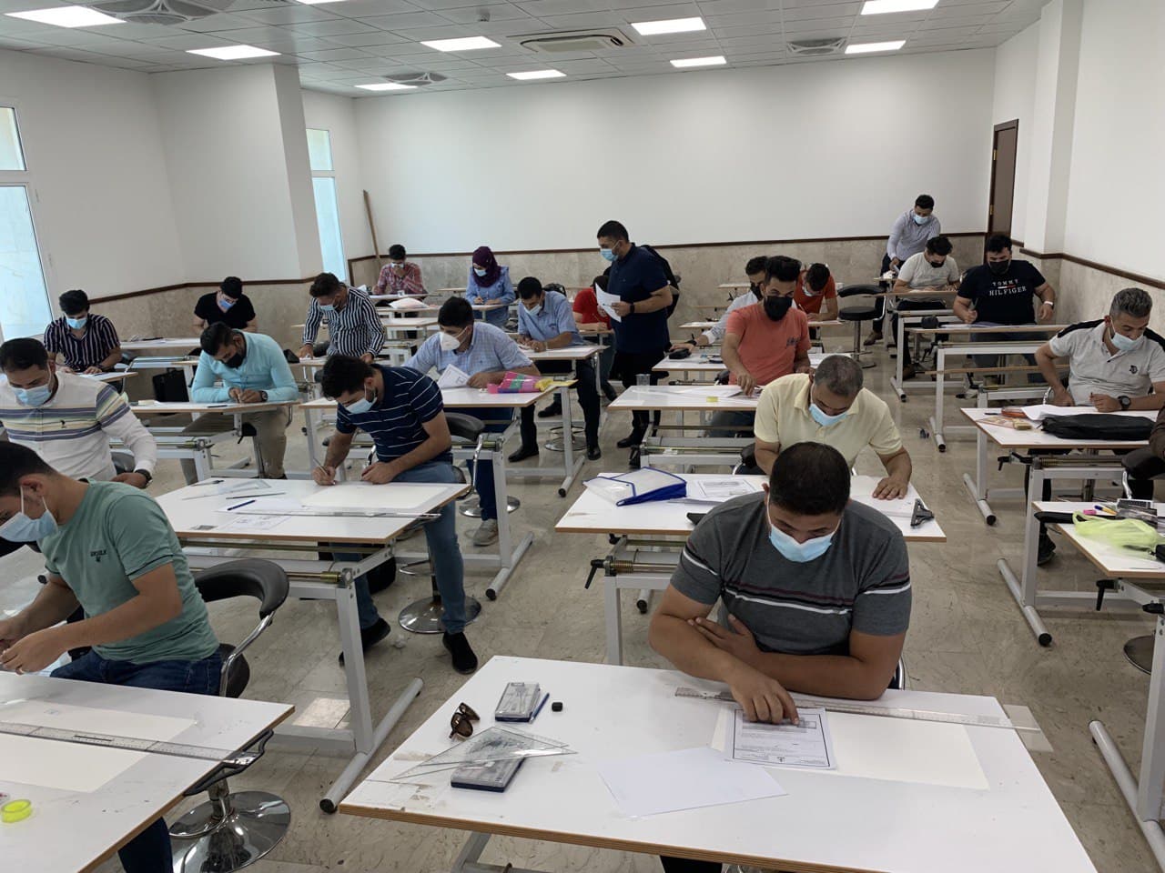 جانب من امتحان الحضوري لمادة الرسم الهندسي لطلبة المرحلة الأولى - قسم الهندسة المدنية يوم الاثنين المصادف 26/7/2021.