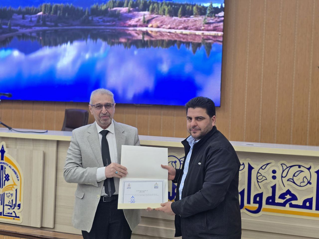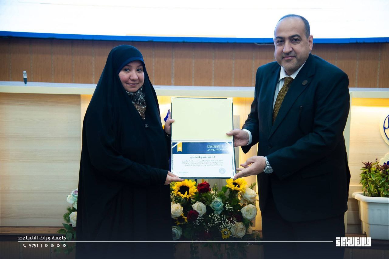 بحضور الأمين العام للعتبة الحسينية المقدسة رئاسة جامعة وارث الأنبياء (عليه السلام) تتقدّم بالشكر والتقدير لمعاون عميد كلية العلوم الإسلامية
