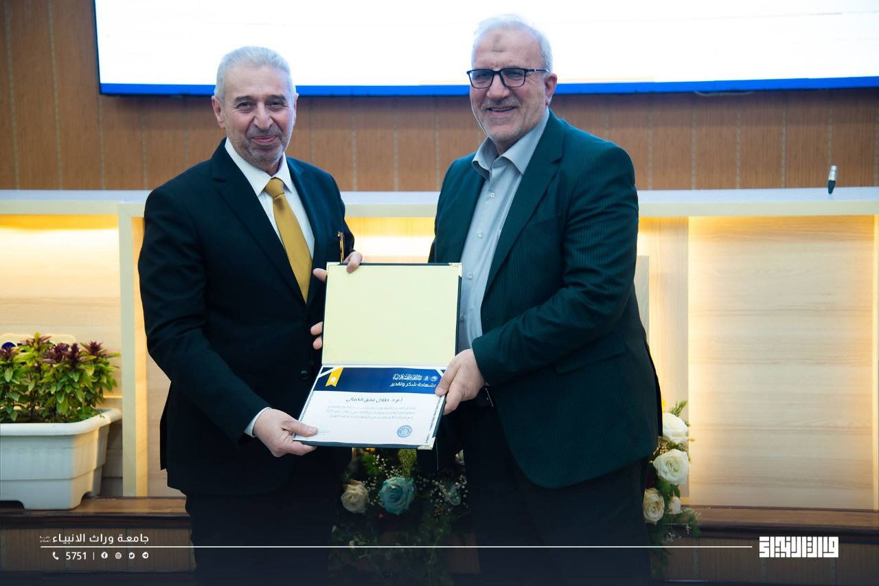 بحضور الأمين العام للعتبة الحسينية المقدسة رئاسة جامعة وارث الأنبياء (عليه السلام) تتقدّم بالشكر والتقدير لعميد كلية العلوم الإسلامية.