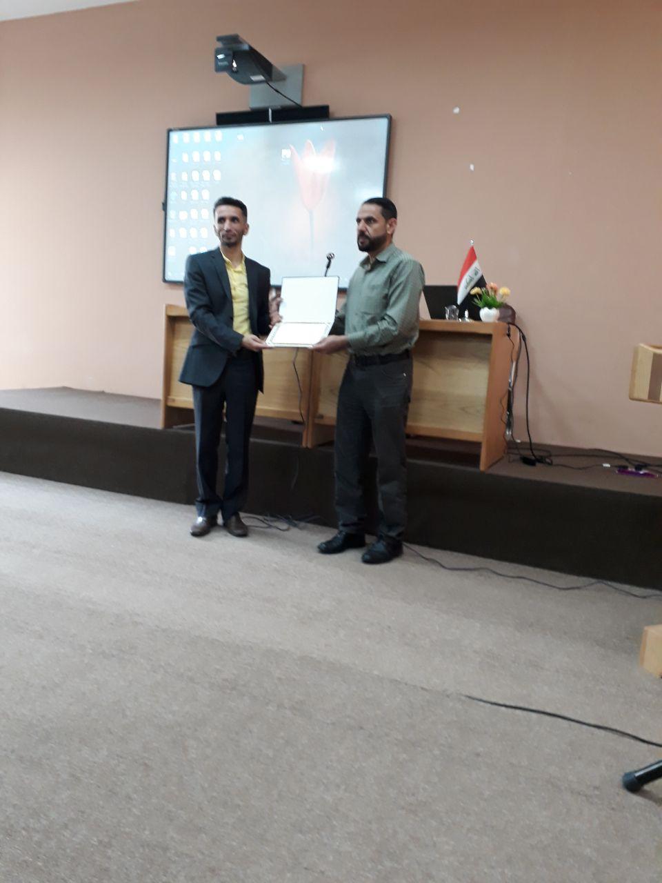 كرم الدكتور طلال فائق الكمالي عميد كلية العلوم الاسلامية / جامعة وارث الانبياء من قبل رئيس جامعة كربلاء لجهوده المتواصلة في خدمة الدين والعلم والانسان والوطن .