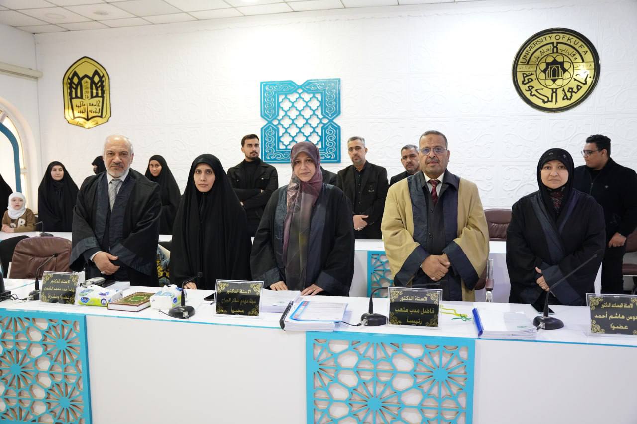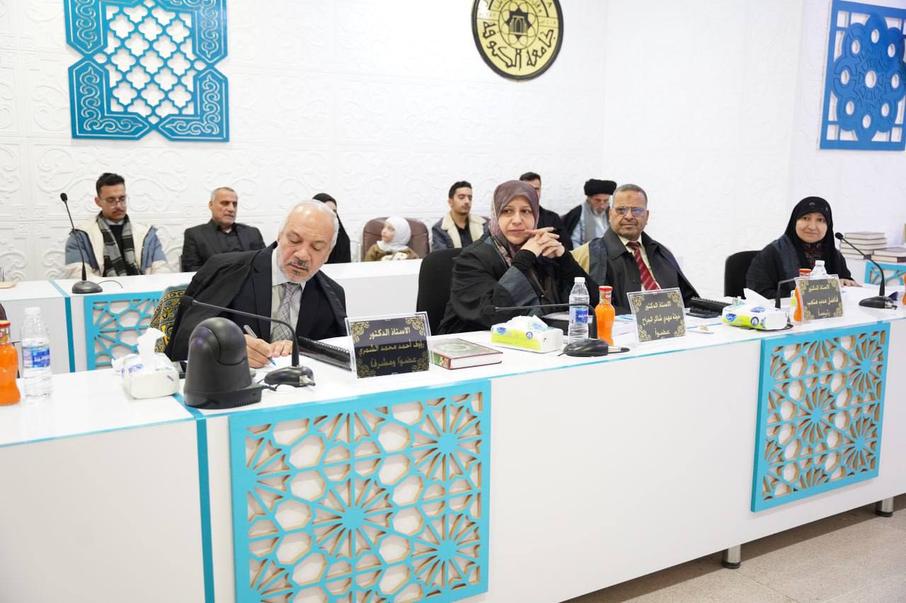 شاركت الأستاذ المساعد الدكتورة فردوس العلوي، التدريسية في كلية العلوم الإسلامية، في عضوية لجنة مناقشة رسالة الماجستير الموسومة "الانتقائية وأثرها الأدائي في المدونات التفسيرية المعاصرة – دراسة نقدية"، والتي قدمتها الطالبة رقية عباس في كلية الفقه.