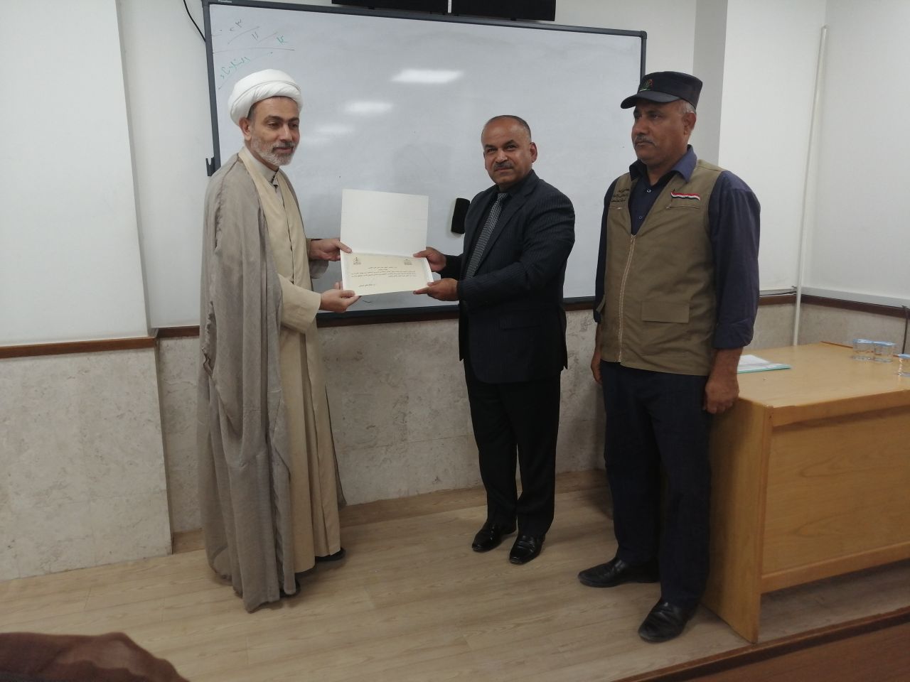 وفي ختام الندوة، قدم كلية العلوم الإسلامية كتاب شكر وتقدير السيد عميد الكلية د. طلال الكمالي، إلى الدكتور الغزالي، تقديرًا لجهوده القيّمة في نقل المعرفة وتوعية الشباب حول هذا الأمر الحيوي.
