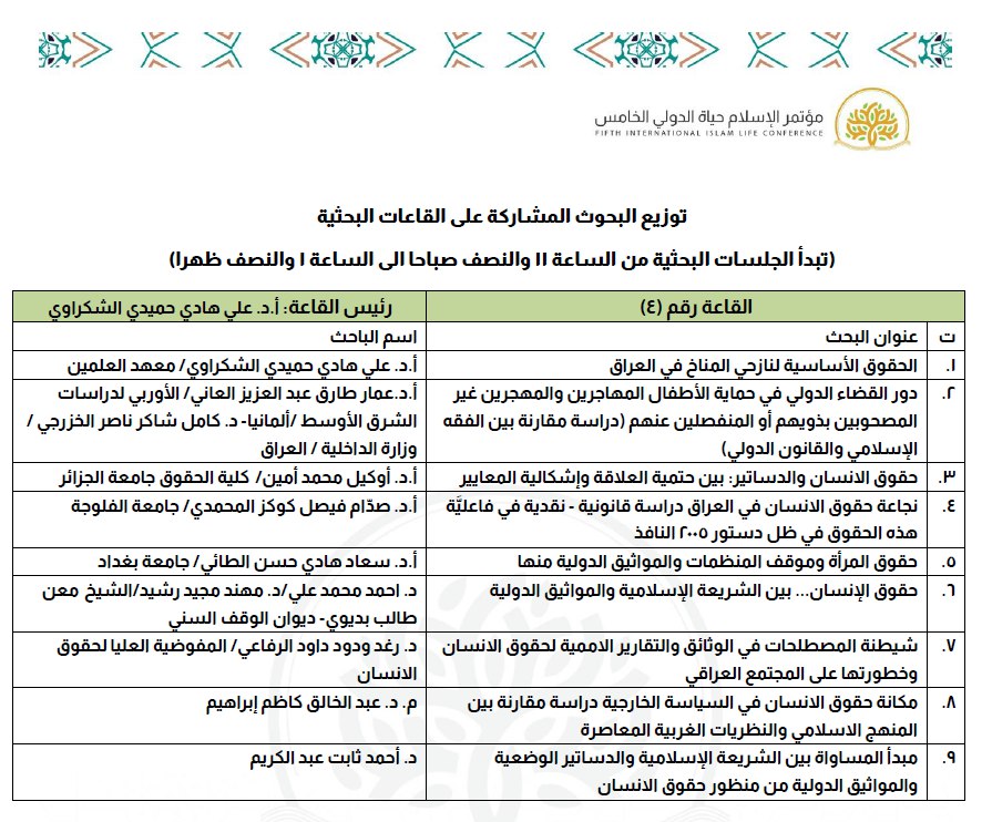 أبحاث المؤتمر العلمي الخامس "الإسلام حياة" الموسوم بـ "حقوق الإنسان والتحديات المعاصرة"