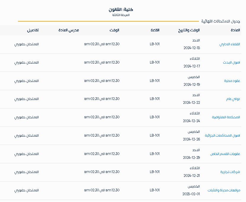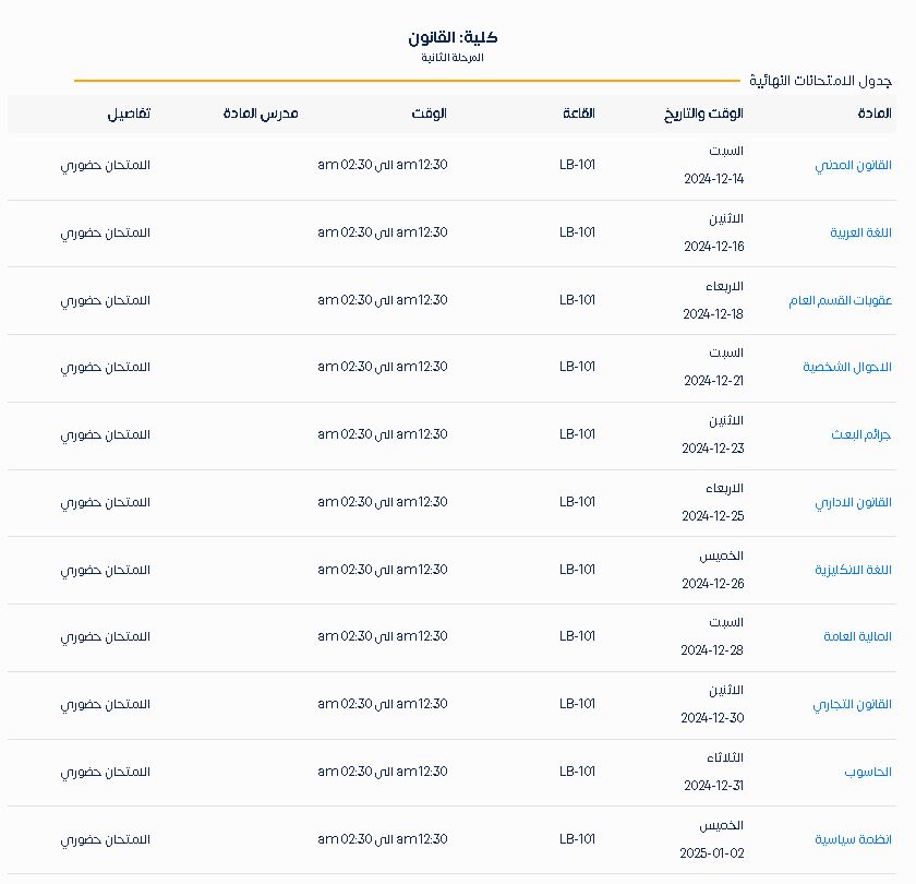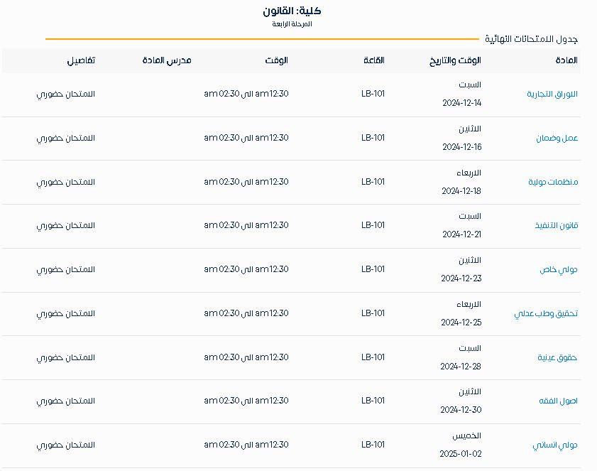 لمعاينة الجدول اضغط هنا : جدول المرحلة الرابعة