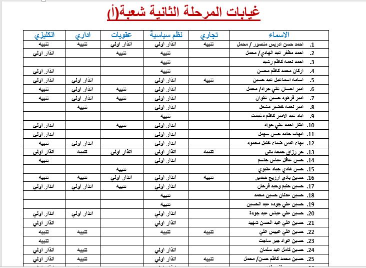 غيابات المرحلة الثانية