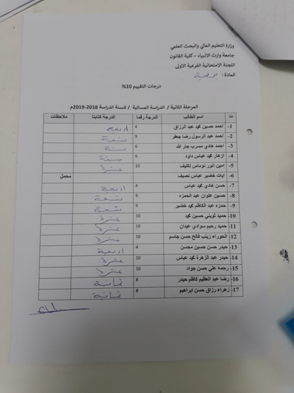 إجراء الامتحان المشترك لتعزيز الرصانة العلمية في قسم العلوم المالية والمصرفية الاسلامي كلية العلوم الاسلامية