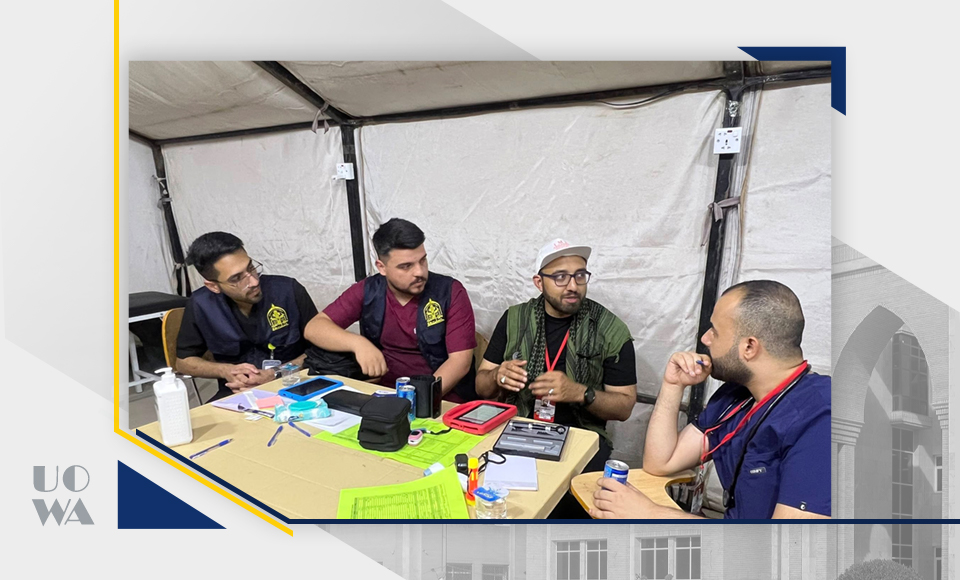 في إطار الدور الإنساني والخدمي لجامعة وارث الأنبياء (عليه السلام) خلال زيارة الأربعين شارك عدد من طلبة كلية الطب في تقديم الخدمات الطبية والعلاجية ضمن الكوادر الطبية في مفارز مستشفى سفير الامام الحسين عليه السلام
