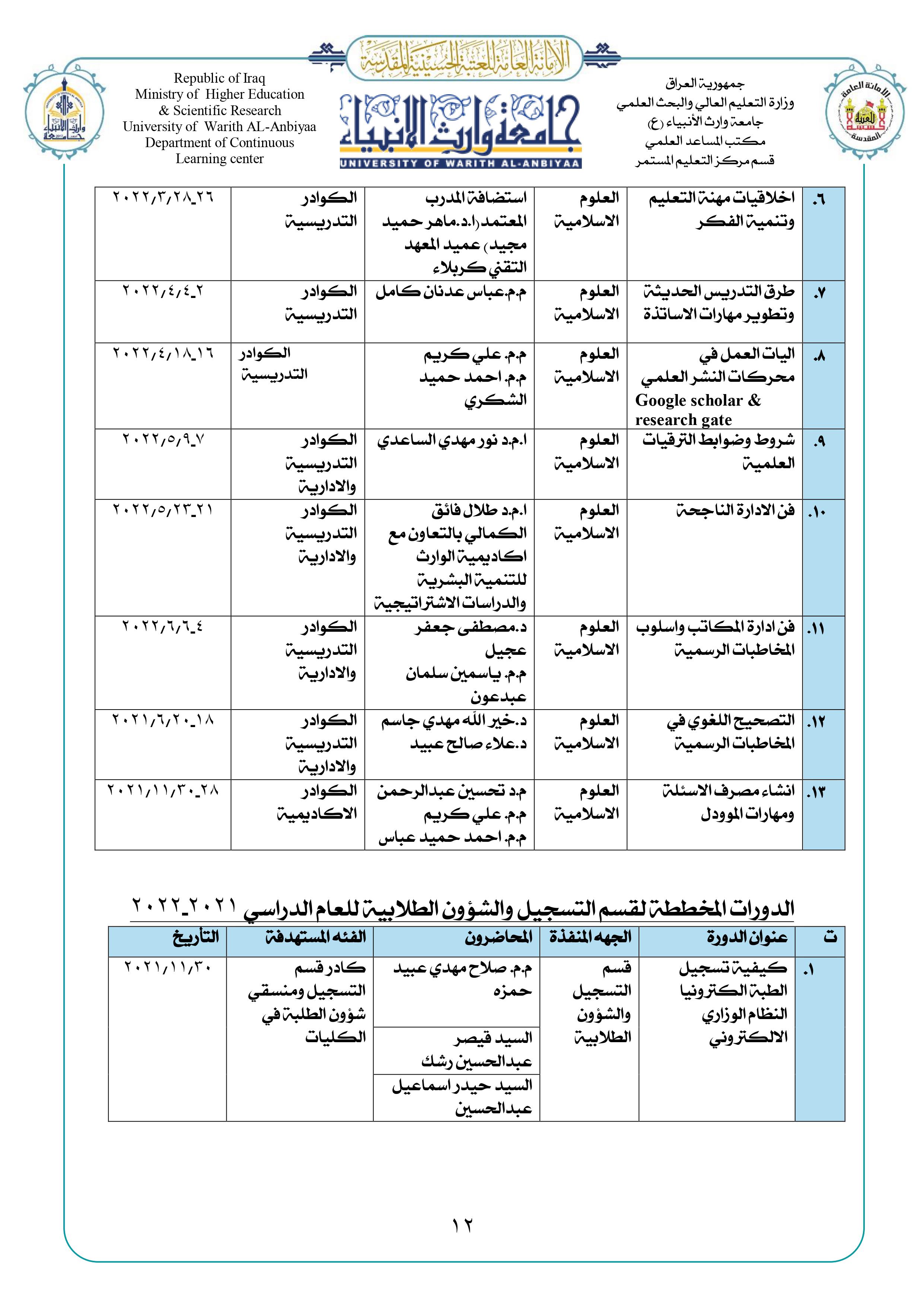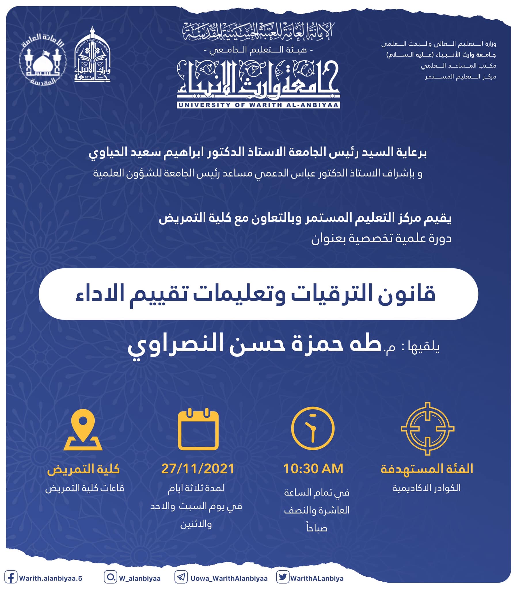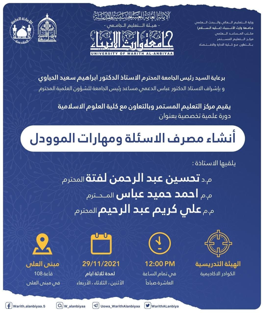 تعليمات المشاركة في دورات مركز التعليم المستمر في جامعة وارث الانبياء (عليه السلام):