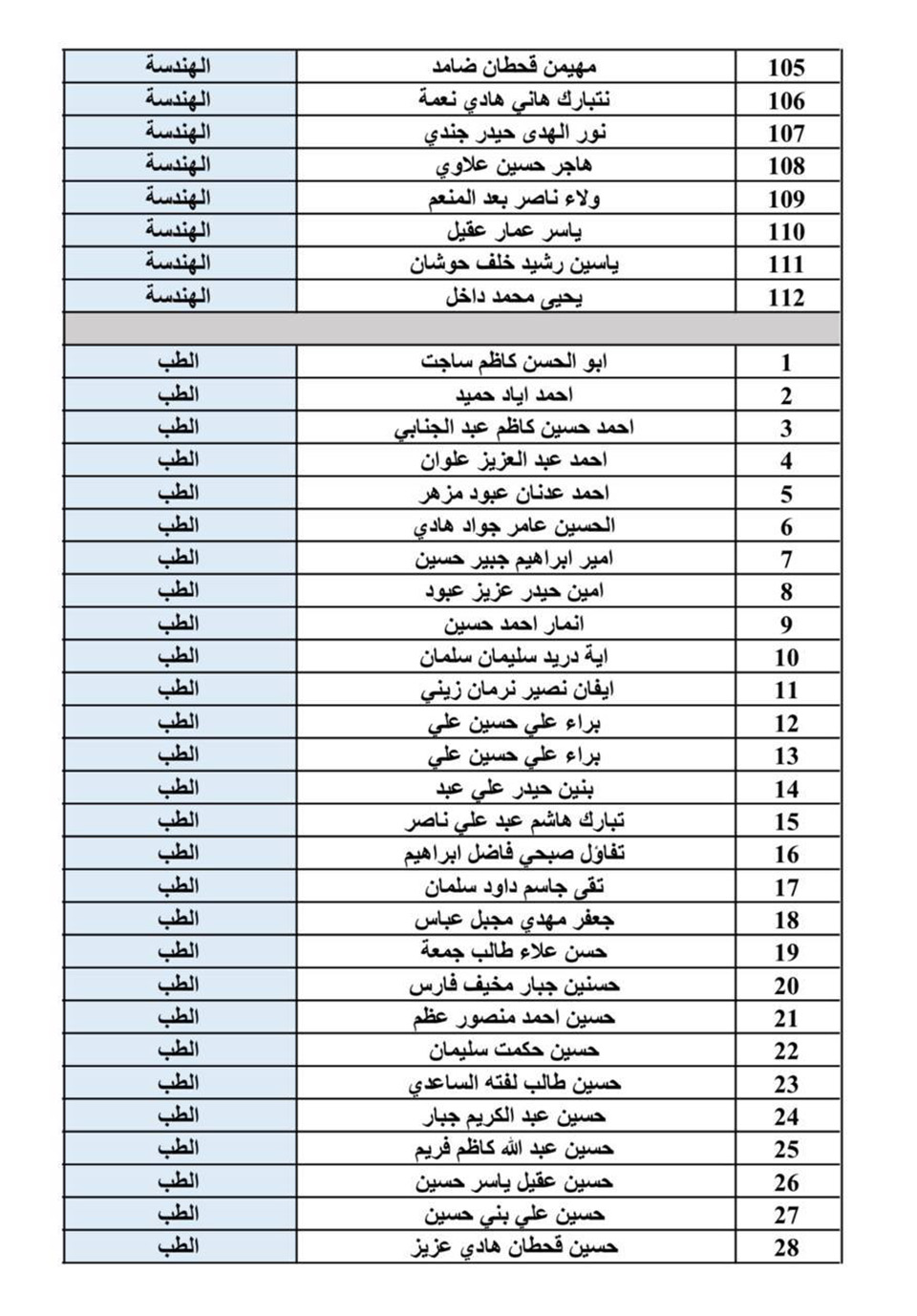 الطلبة الأعزاء المدرجة أسماؤهم ضمن القوائم القبول في