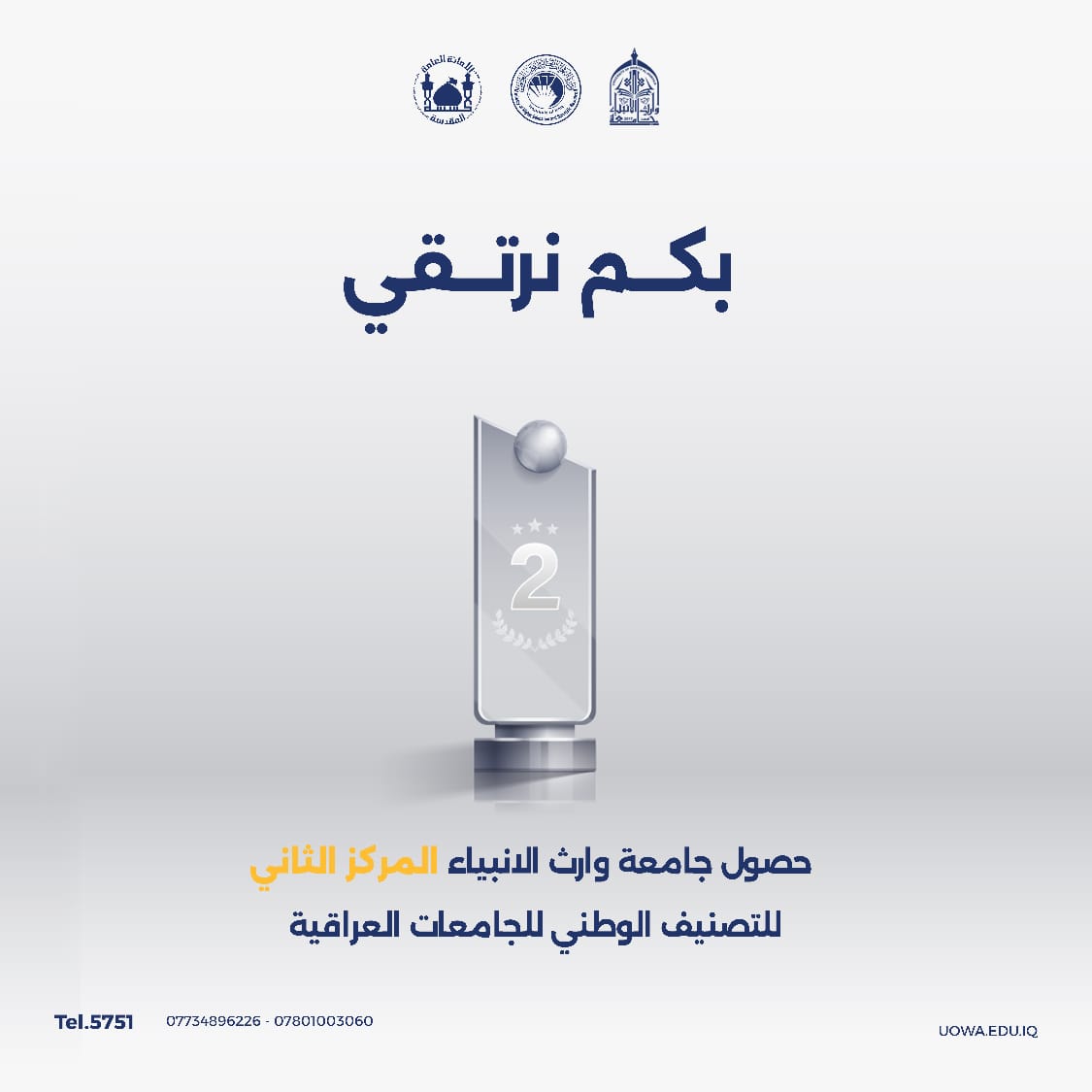تبارك رئاسة جامعة وارث الانبياء عليه السلام لجميع طلبتها ومنتسبيها حصول الجامعة على المركز الثاني في التصنيف الوطني للجامعات العراقيه