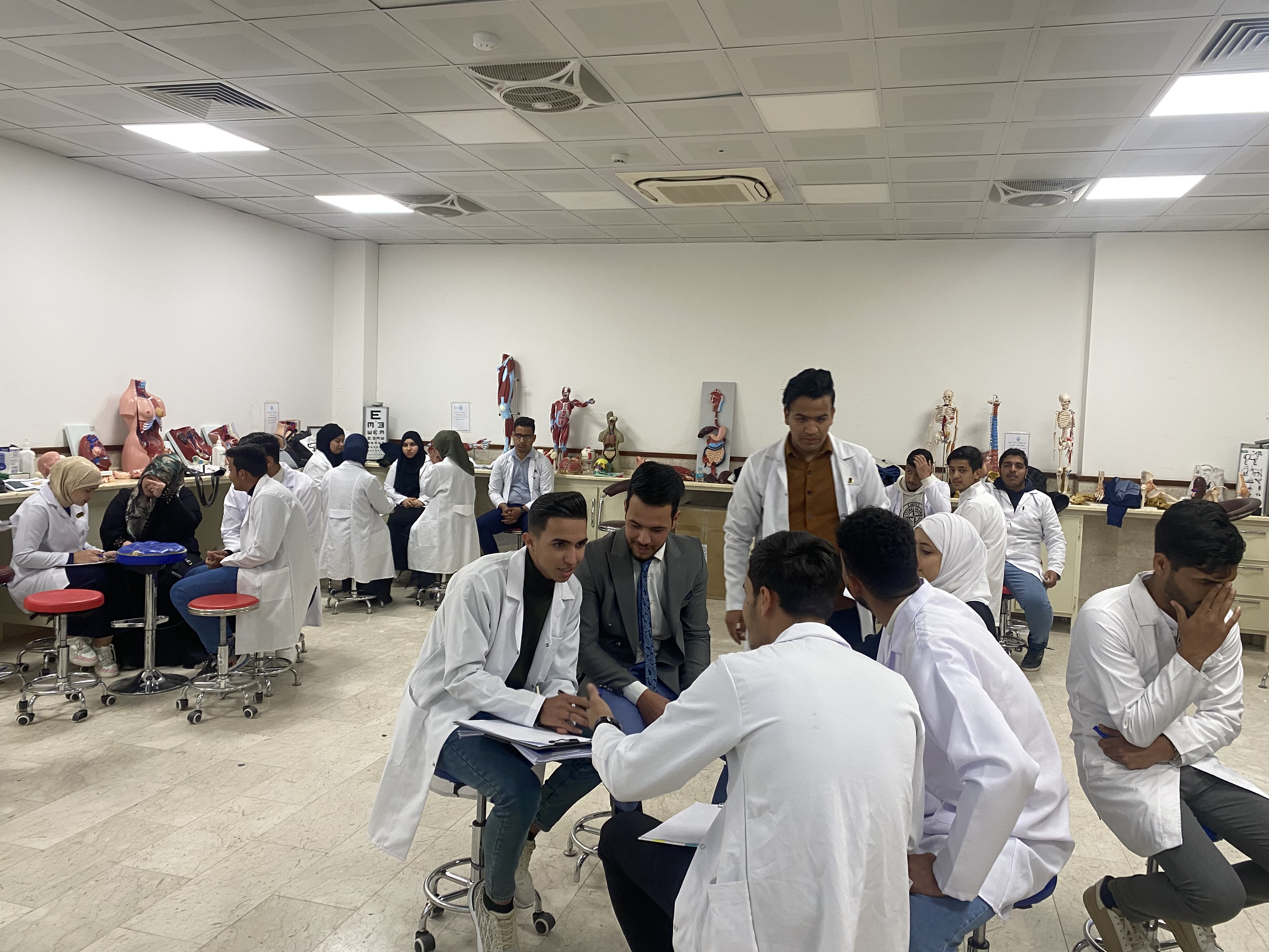 قام الاستاذ المساعد الدكتور نسيم سمير صقر معاون عميد كلية التمريض بجولة علمية للاطلاع على سير العملية التعليمة ولضمان جودة الدروس العملية التي يتلقونها الطلبة في المختبرات التعليميه وتدريب الطلبة بشكل مجموعات صغيره وتطوير مهاراتهم في مادة التشريح العملي وتأهيلهم لاداء مسابقة ابطال كلية التمريض التي ستقام يوم 27 /2 /2024