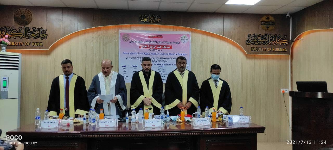شارك الاستاذ المساعد الدكتور مرتضى غانم الجبوري عميد كلية التمريض بعضوية لجنة مناقشة أطروحة رسالة ماجستير في كلية التمريض جامعة الكوفة والموسومة بـ " رضا المرضى حول جودة الخدمات الصحية وجودة النفاذ الدموي المقدمه في وحدة الغسل الكلوي"