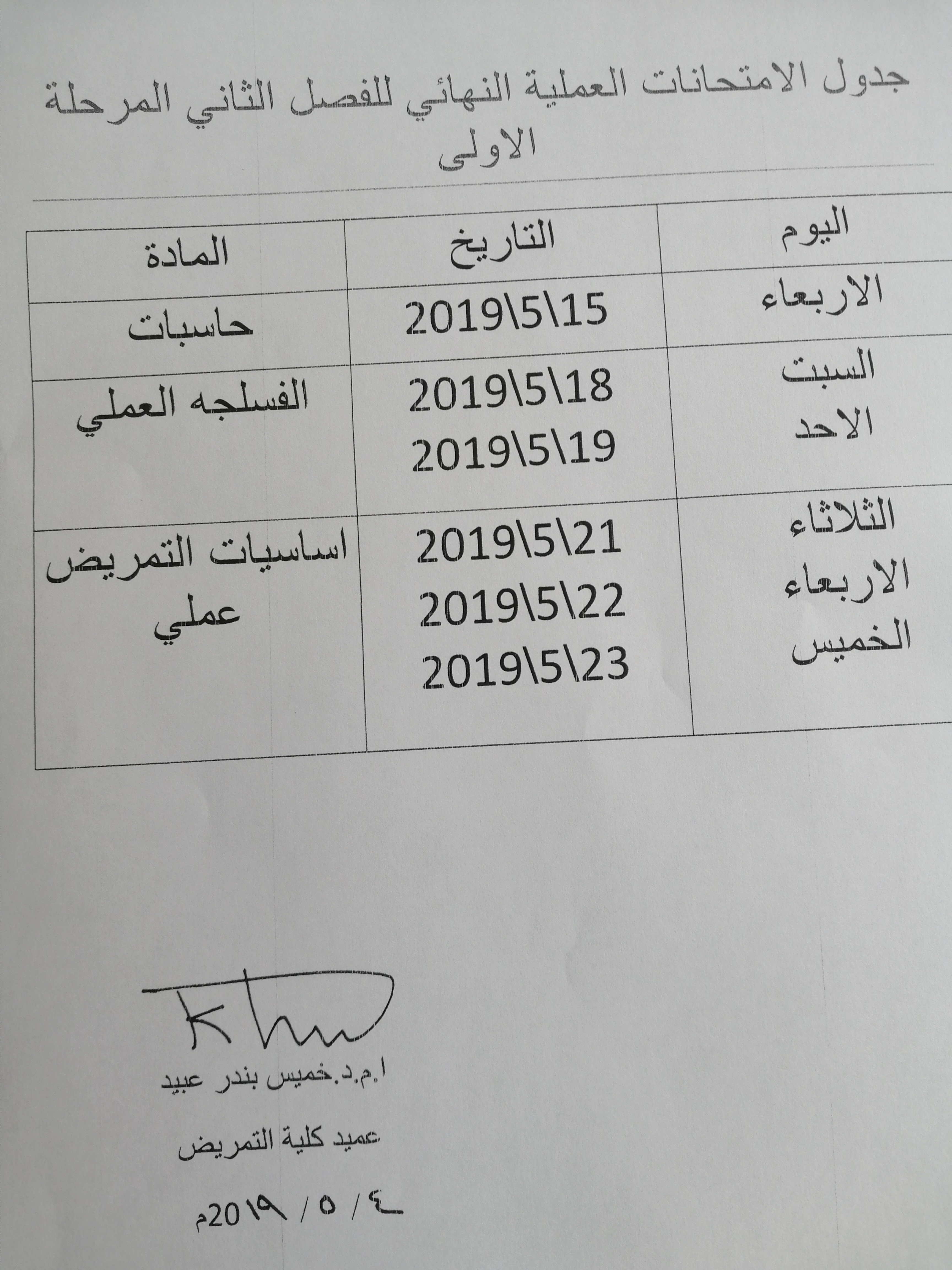 بتأريخ ٨/٥/٢٠١٩ في تمام الساعه ١٠:٣٠ص على قاعة كلية التمريض.