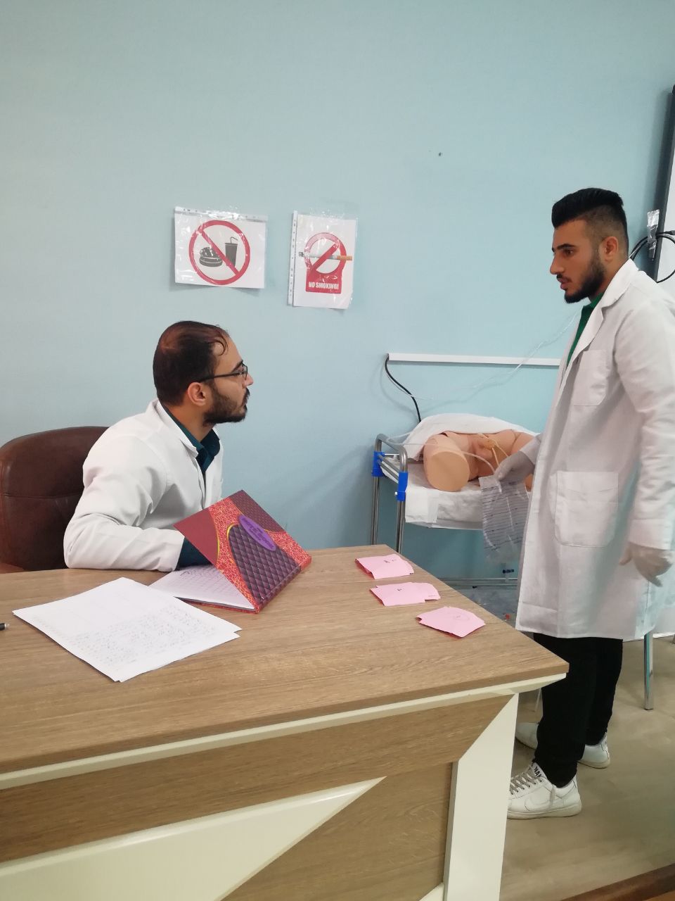 أجرت كلية التمريض جامعة وارث الأنبياء الإمتحان العملي النهائي لمادة أساسيات التمريض العملي الكورس الثاني لطلاب المرحلة الأولى بين الفترة من 18-5-209 إلى 20-5- 2019 بإشراف مجموعة من الأساتذة الأفاضل مدرسي المادة حيث أجري الإمتحان على مانيكانات ودمى حديثة في مختبرات الكلية وبين الأستاذ شادي دواره مشرف تدريب الطلاب في مستشفى الإمام زين العابدين ع أن هذا الإمتحان جاء تتويجا للتدريب العملي الذي تلقاه الطلاب في المختبرات على أحدث المانيكانات والأجهزة والذي رفده أيضا تدريب الطلاب بشكل عملي على كافة المهارات الأساسية والتي درست في الكورسين الأول والثاني في مستشفى الإمام زين العابدين ع وهذا بهدف تزويد الطلاب بالمهارة والخبرة العملية الازمة للممارسة المهنة بشكل آمن وبمستوى عالي خدمة لمجتمعنا العراقي الحبيب.