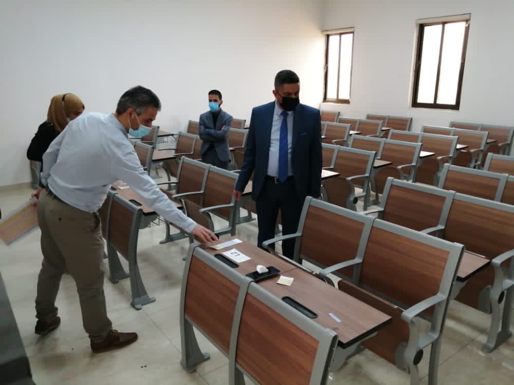 باشرت كلية التمريض بالاستعداد وتهيأة القاعات الدراسية وذلك لقرب بدأ الامتحانات النهائية الحضورية للفصل الدراسي الاول للعام الدراسي 2020-2021 من خلال تجهير المقاعد وتوزيع الطلبة على القاعات مع الاخذ بنظر الاعتبار وجود مسافة الامان بين الطلبة كإجراء احترازي من فايروس كورونا.