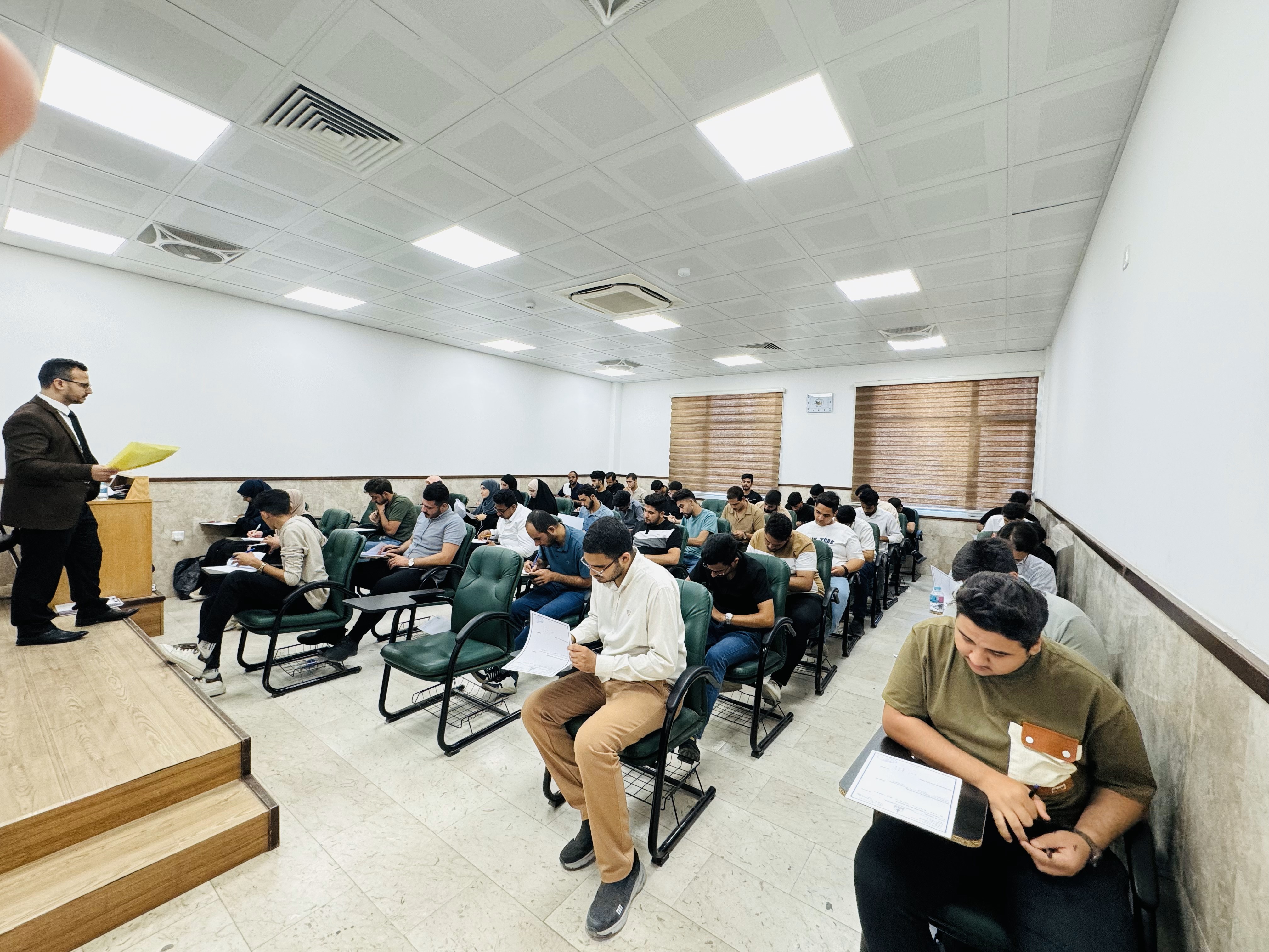 طلبة المرحلة الأولى في كلية العلوم لجامعة وارث الانبياء عليه السلام يؤدون الإمتحانات النهائية للفصل الدراسي الأول