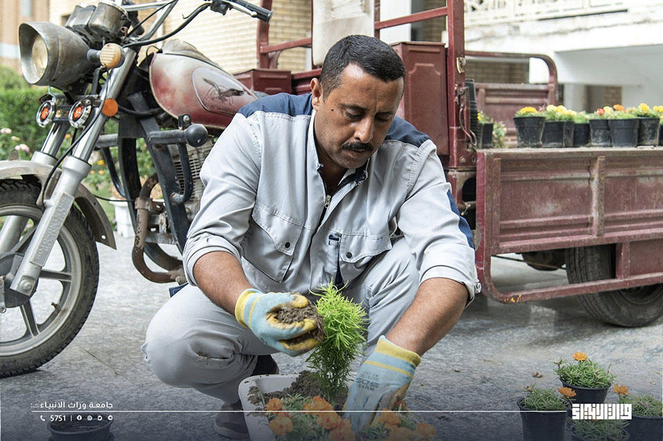 نظّمت شعبة الزينة والتشجير في قسم شؤون ديوان جامعة وارث الأنبياء (عليه السلام) حملة لتشجير عدد من المساحات داخل الحرم الجامعي، بمشاركة عدد من الأساتذة والطلبة، بهدف تعزيز المساحات الخضراء ونشر الوعي البيئي.