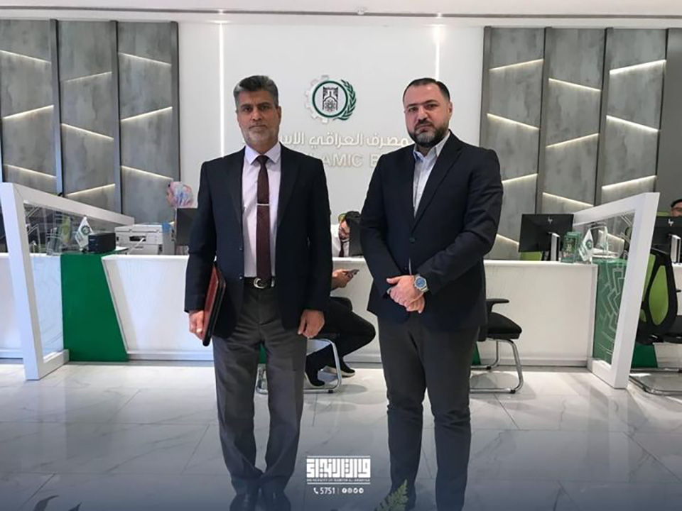 في إطار استراتيجية التميز الأكاديمي، قام الدكتور جعفر عبد الأمير الحسيني، رئيس قسم العلوم المالية والمصرفية الإسلامي في كلية العلوم الإسلامية بجامعة وارث الأنبياء، بزيارة للمصرف العراقي الإسلامي للتنمية والاستثمار.