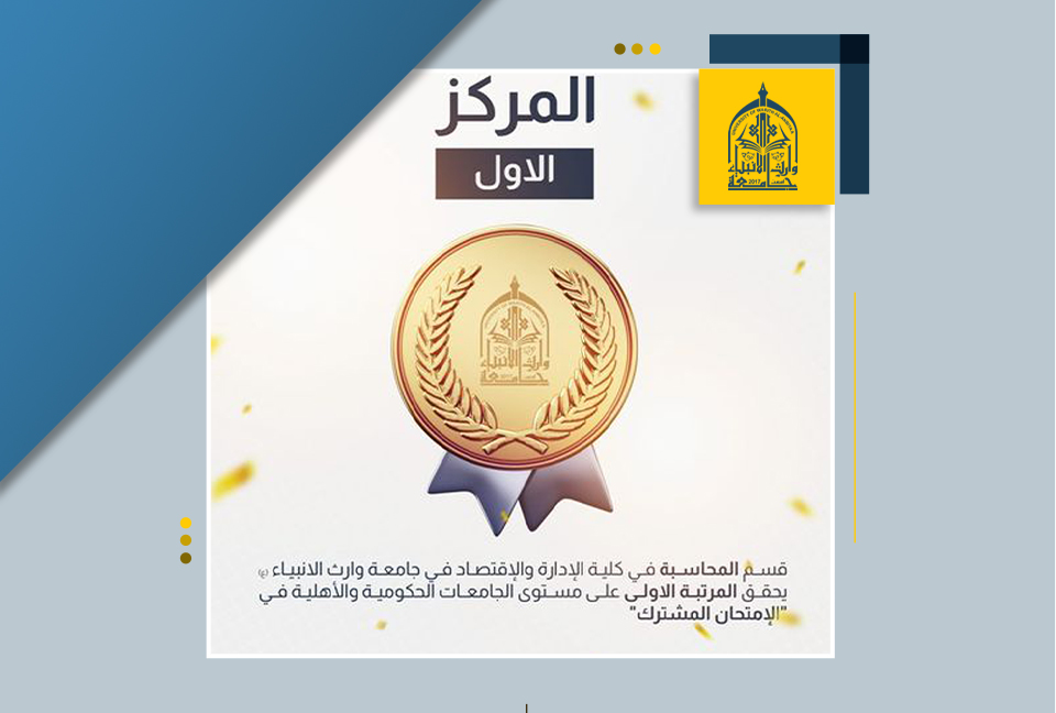 تبارك رئاسة جامعة وارث الأنبياء (عليه السلام) لأساتذة وطلبة قسم المحاسبة في كلية الإدارة والاقتصاد تحقيقهم "المرتبة الأولى" على مستوى الجامعات الحكومية والأهلية في كربلاء المقدسة في "الامتحان المشترك". هذا الإنجاز يعكس تفوق وجهود القسم في تقديم تعليم متميز وإعداد طلبة قادرين على المنافسة الأكاديمية.