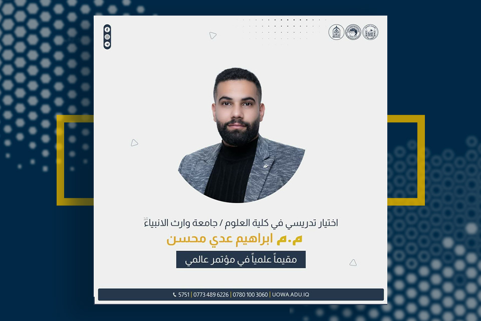 اختير المدرس المساعد إبراهيم عدي الربيعي، التدريسي في قسم تكنولوجيا المعلومات بكلية العلوم، مقيماً علمياً في مؤتمر "Cyber Security and Resilience IEEE CSR 2024" الذي سيعقد في العاصمة البريطانية لندن.