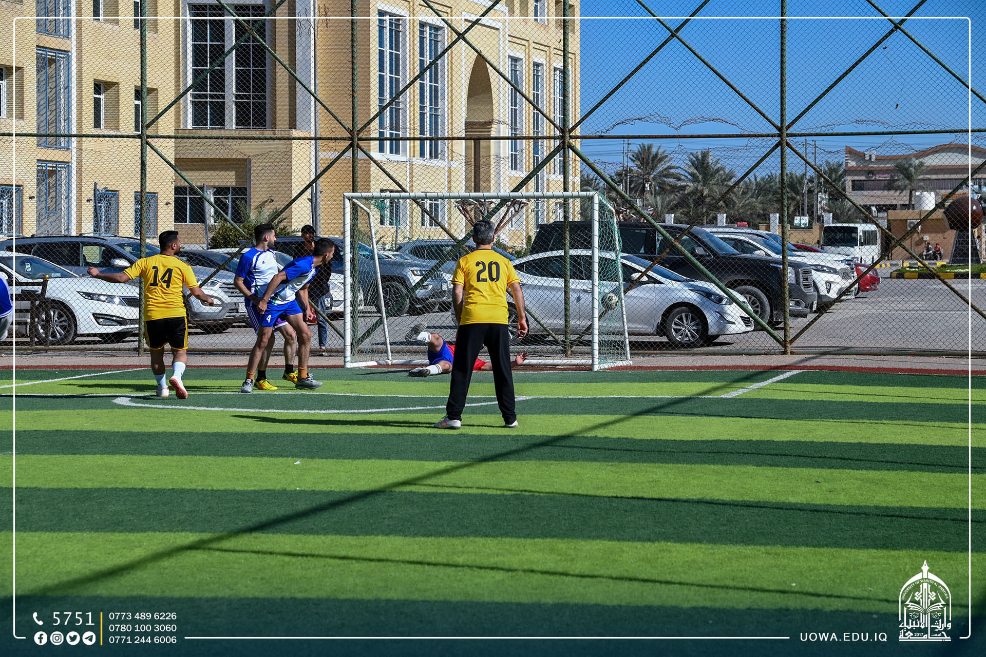 بالصور... منافسات بطولة الاساتذة وموظفي جامعة وارث الانبياء(عليه السلام) لخماسي كرة القدم، التي يقيمها قسم النشاطات الطلابية في الجامعة بالتعاون مع مركز رعاية الشباب.