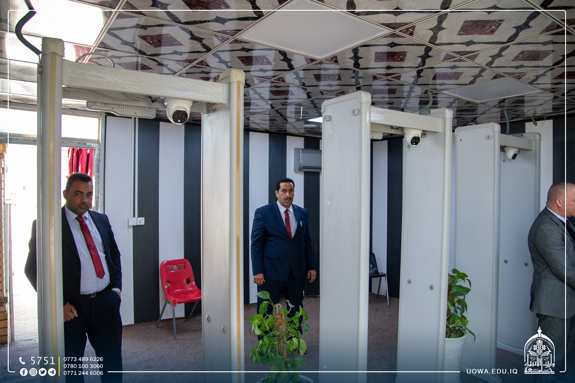 حرصاً على سلامة طلبتها الاعزاء، ادخلت رئاسة جامعة وارث الانبياء(عليه السلام) منظومات دخول متطورة داخل مقصورات دخول الطلبة وبمواصفات عالية، وجاء تجهيز هذه المنظومات بجهود قسم المتابعة وقسم ديوان الجامعة، إذ تتميز هذه المنظومات بتسجيلها لاعداد الاشخاص في حال الدخول والخروج، ومقياس لدرجة الحرارة، وكاميرا حرارية، وحساسات لكشف المعادن، وتعمل هذه المنظومات على تقليل الزخم على بوابات الدخول والسرعة في حركة الطلبة داخل المقصورة .