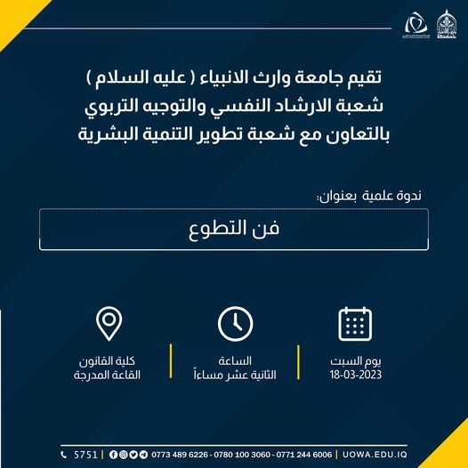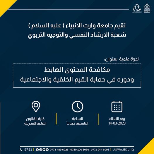 تقيم جامعة وارث الأنبياء (عليه السلام)، شعبة الإرشاد النفسي والتوجيه التربوي